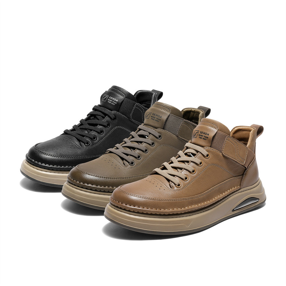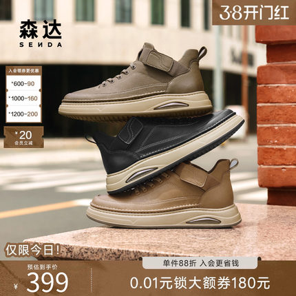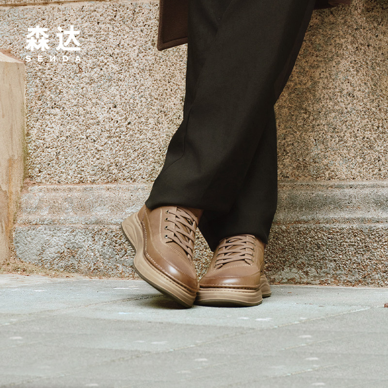 森达工装鞋男冬新商场同款复古圆头工装靴厚底素面休闲板鞋V3051D