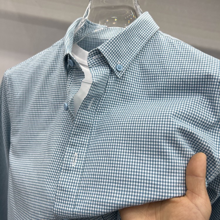 春秋男士商务休闲格子100%纯棉长袖衬衫中年免烫抗皱职业潮流衬衣