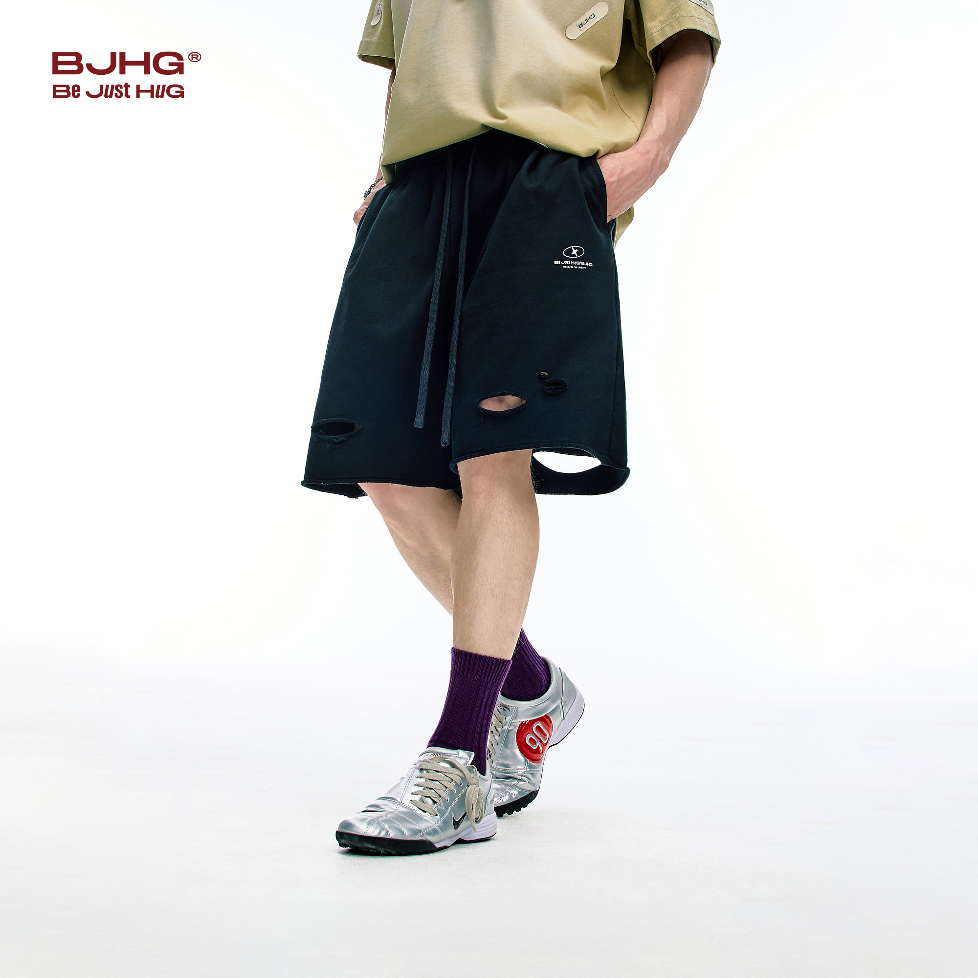BJHG不计后果休闲短裤男夏季潮牌水洗复古做旧裤子宽松破洞五分裤