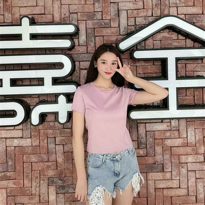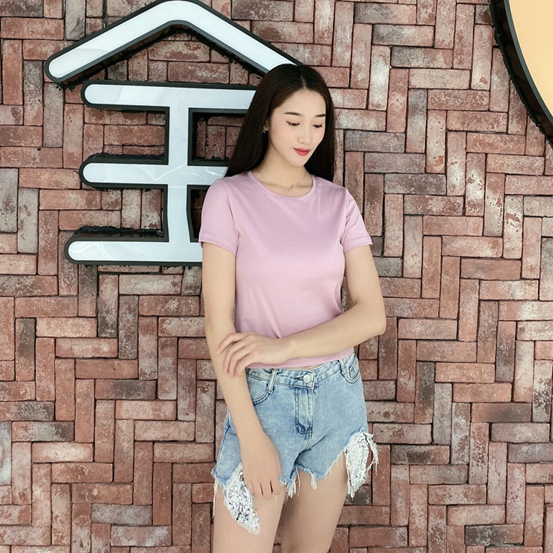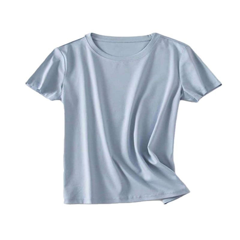 高腰t恤女短款短袖遮肚脐上衣夏宽松修身丝光棉2021新品香芋紫
