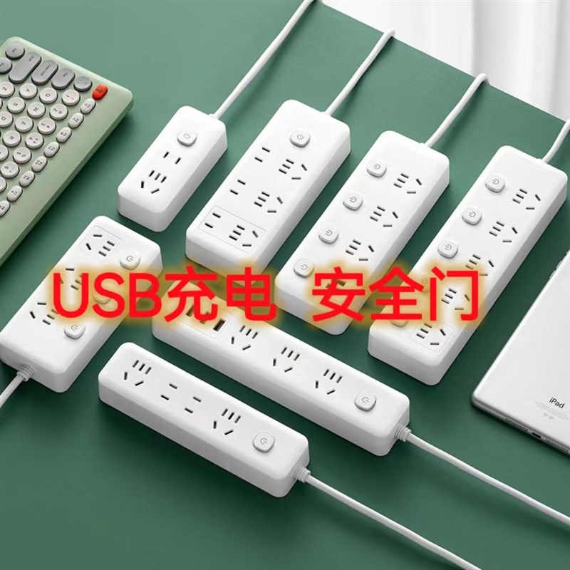 智能家用插板带线学生宿舍插排多功能插座面板USB多孔位排插线板C