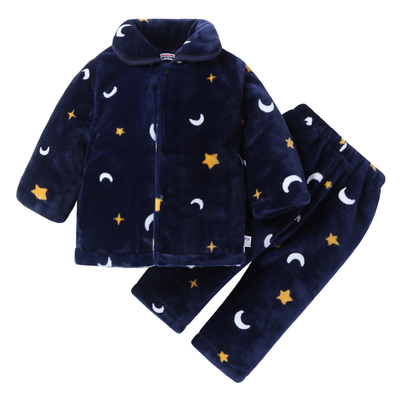 宝宝珊瑚绒家居服冬季男童女童小孩法兰绒儿童睡衣加厚款三层夹棉