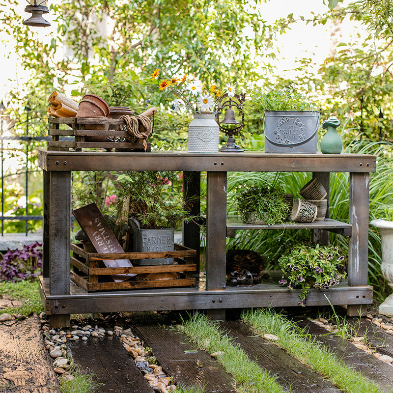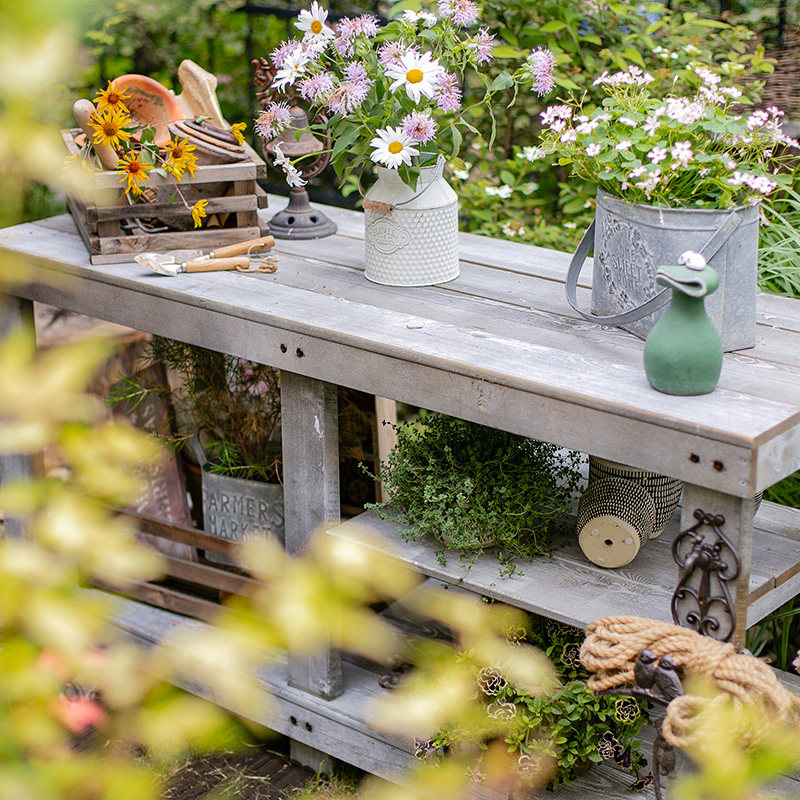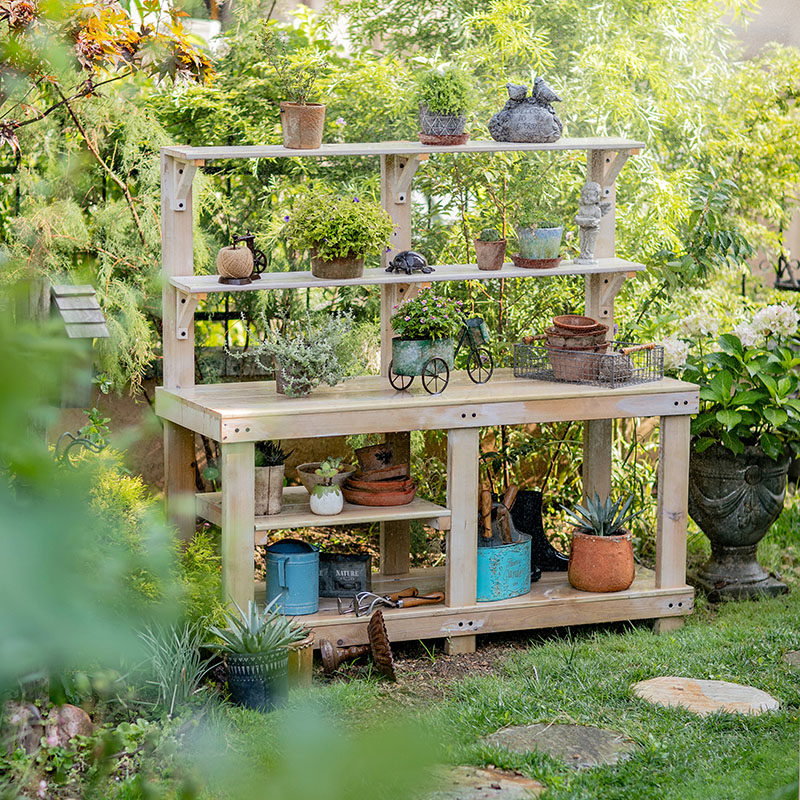 掬涵防腐木花架多层工作台多功能操作台户外园艺花盆架收纳置物架