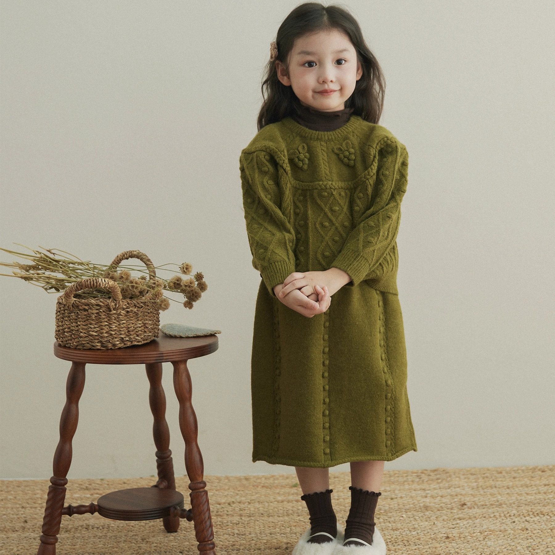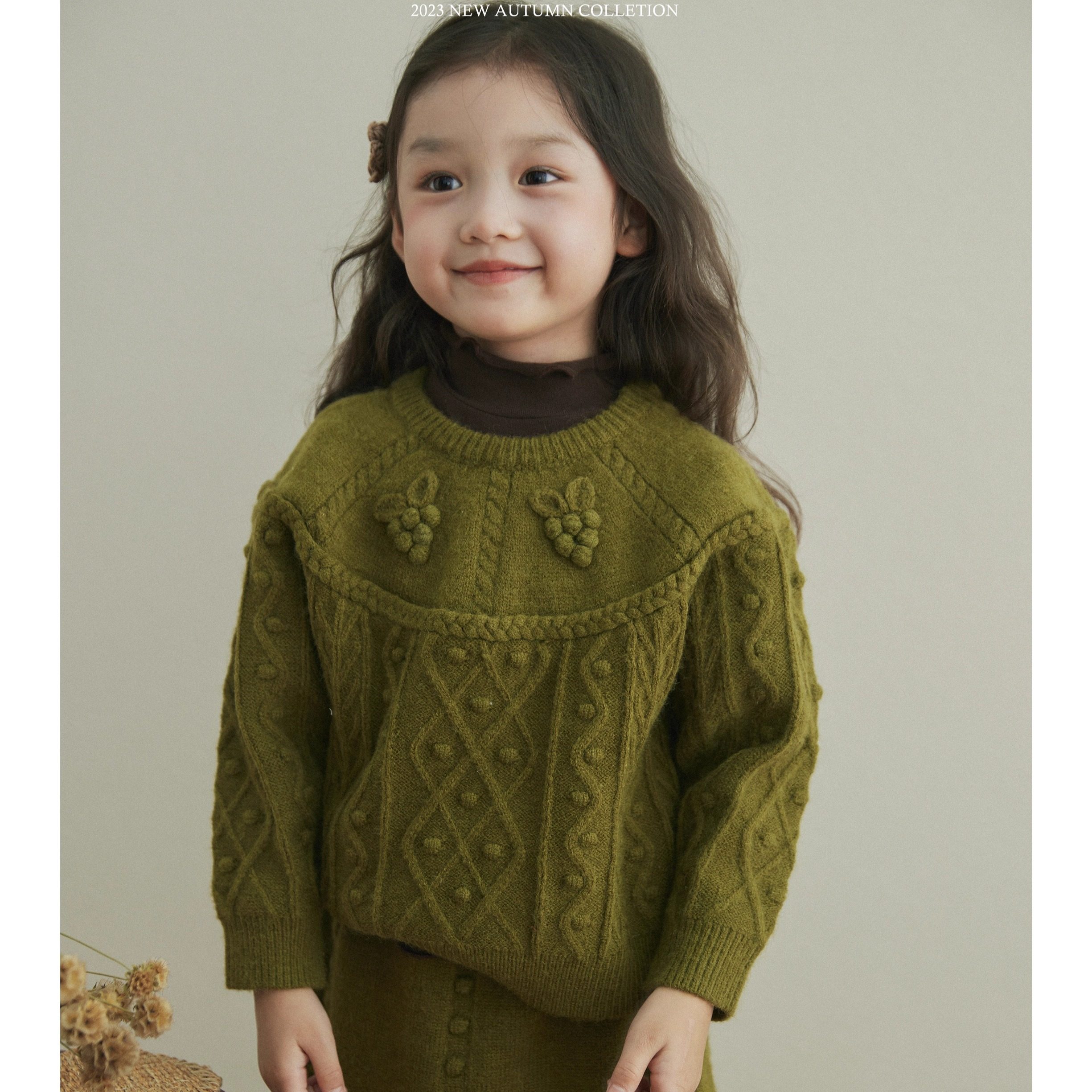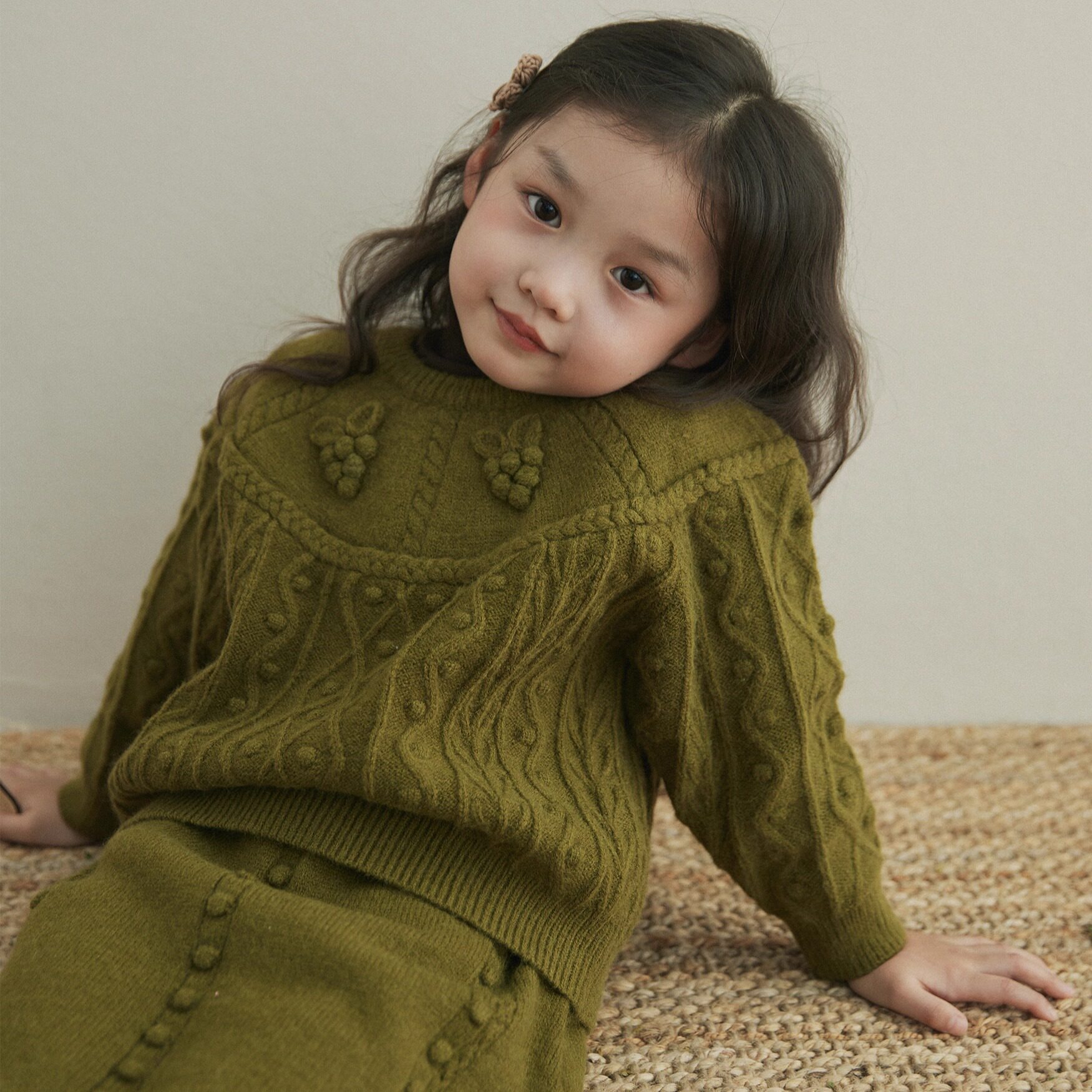 韩版2025新款女童长袖毛衣半裙套装葡萄勾花针织上衣毛线两件套冬