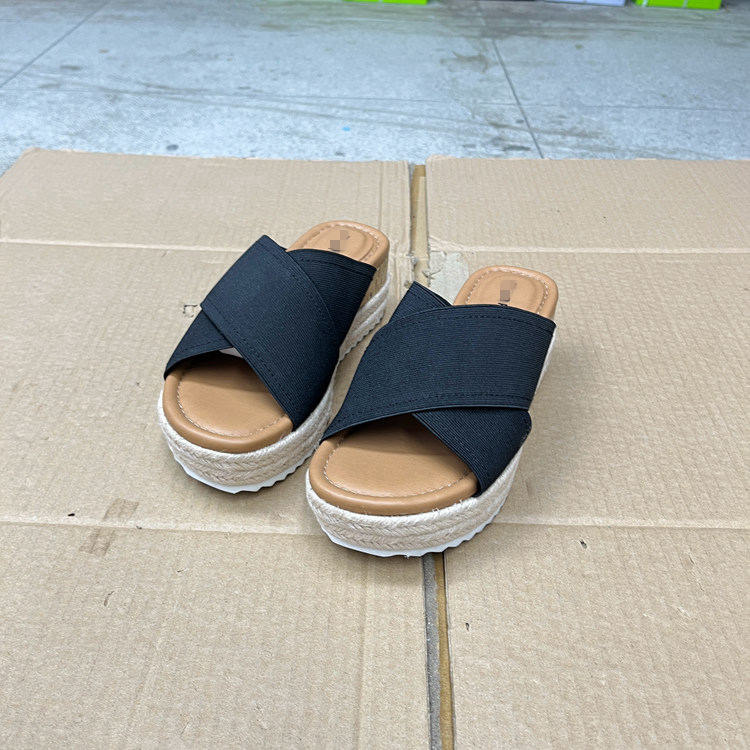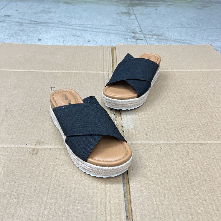 外贸原单女鞋新款加宽时尚圆头纯色厚底松糕底百搭日常拖鞋凉鞋