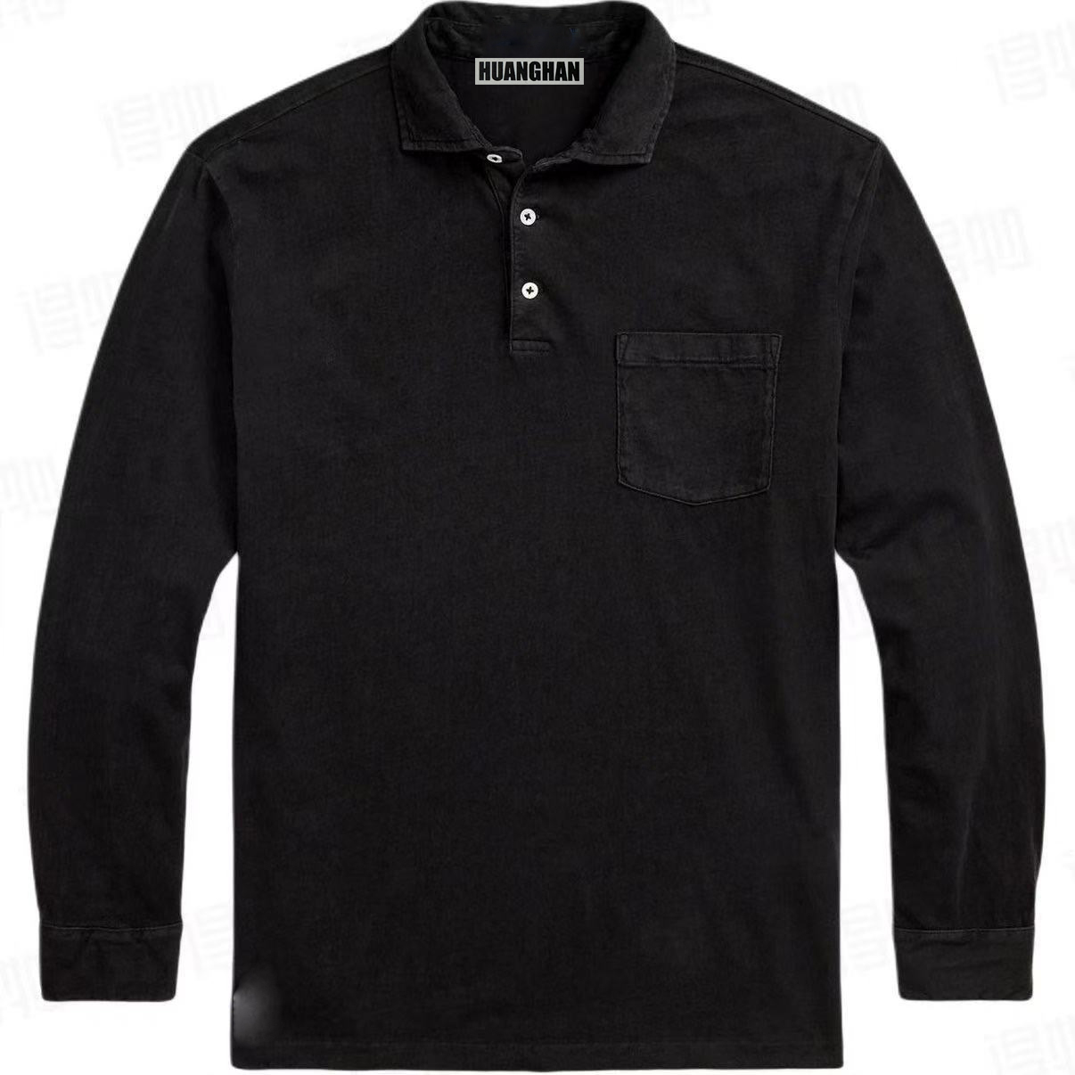 25男款纯色刺绣套头长袖Polo衫平纹针织纯棉长袖衫修身长袖上衣