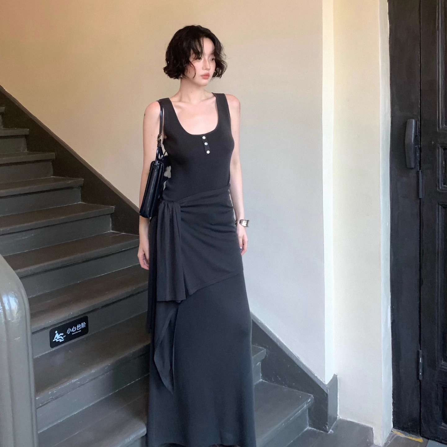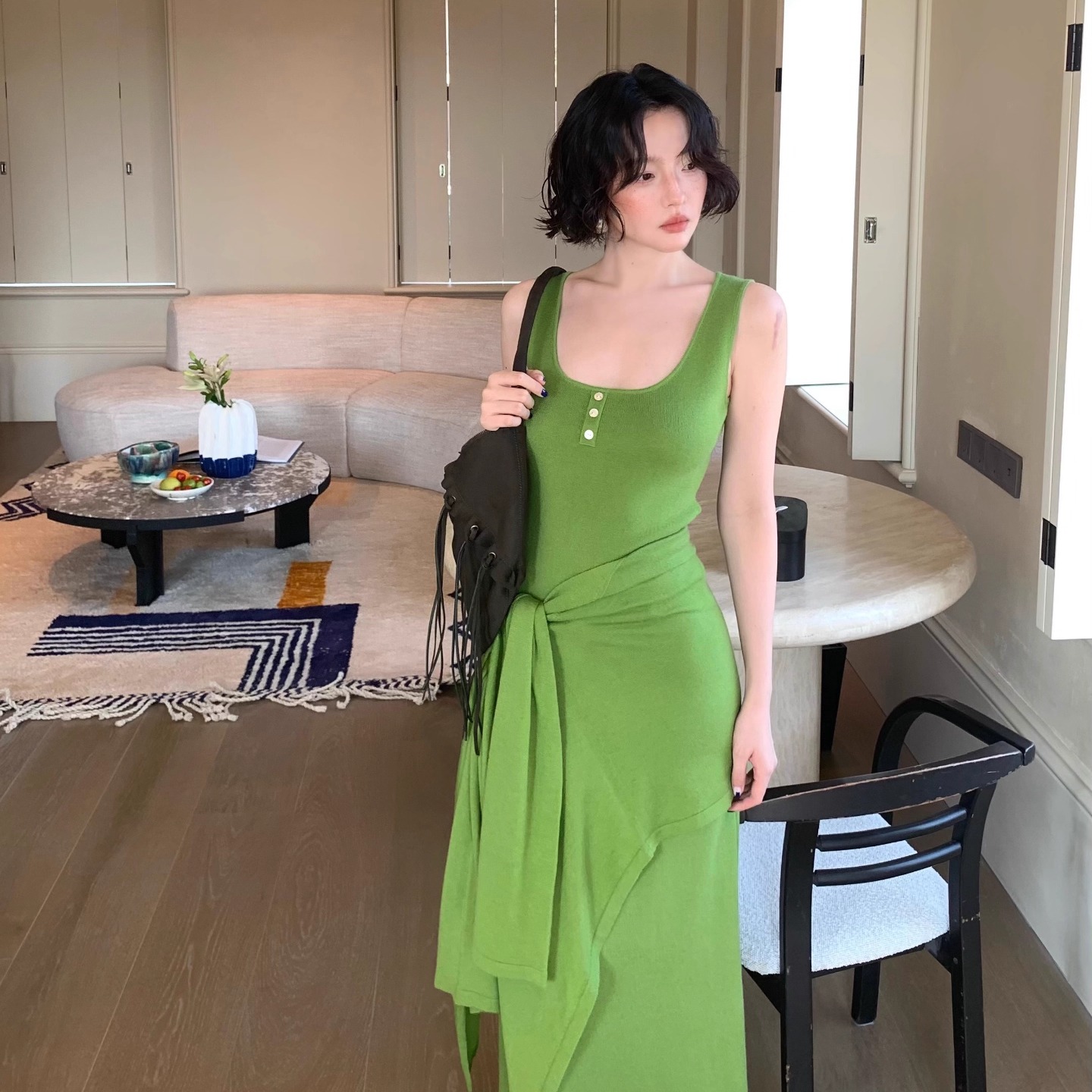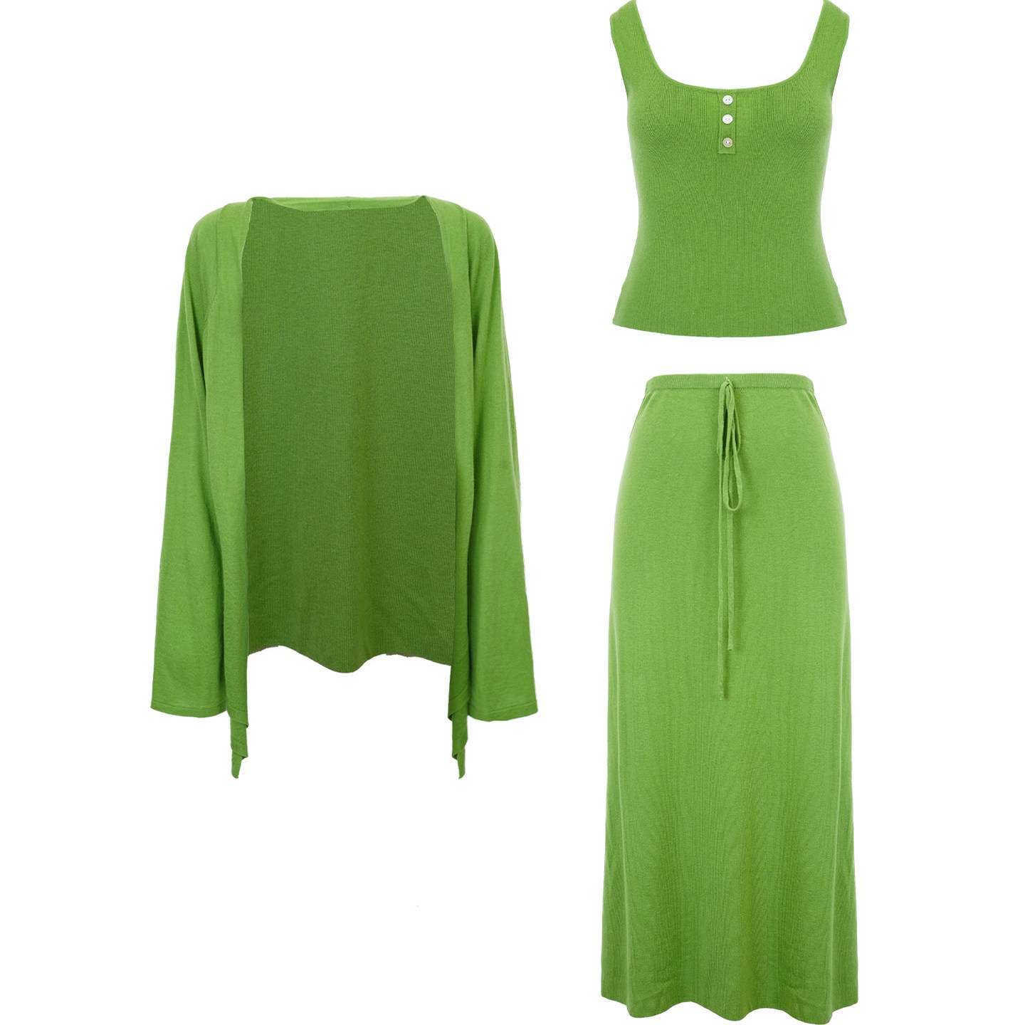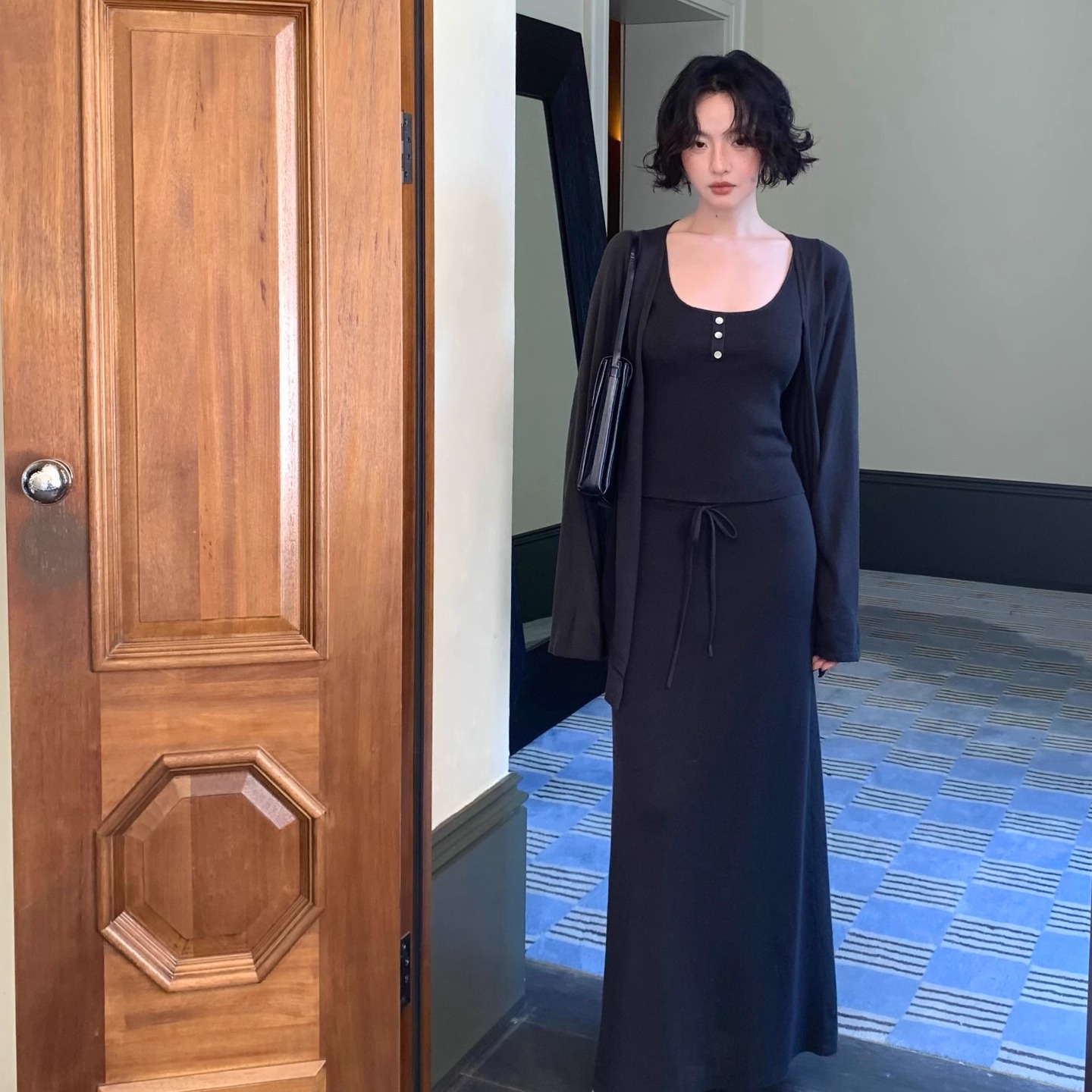 酒午自制【青蔓】港风复古秋季针织外套+U领吊带背心+半裙三件套