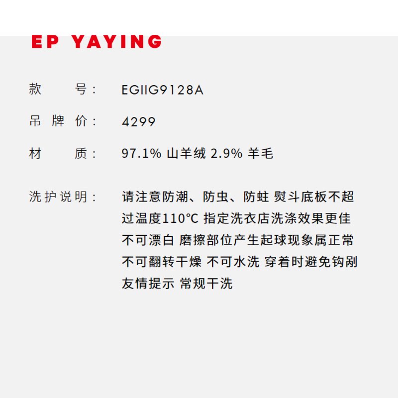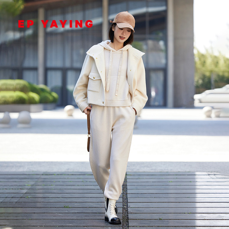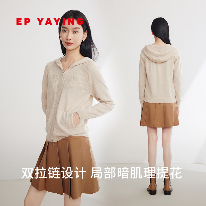 EP YAYING雅莹女装 无染色纯羊绒连帽针织开衫商场同款9128A