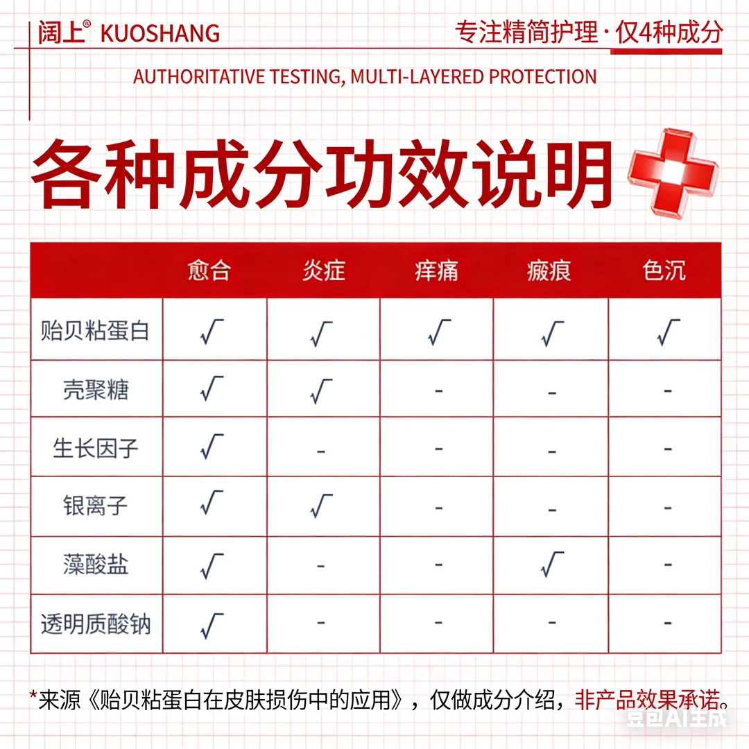 阔上1盒1对医用重组贻贝粘蛋白冻干敷料创面保护为创面愈合