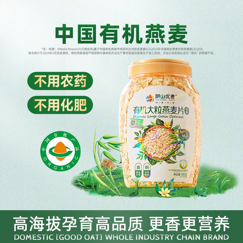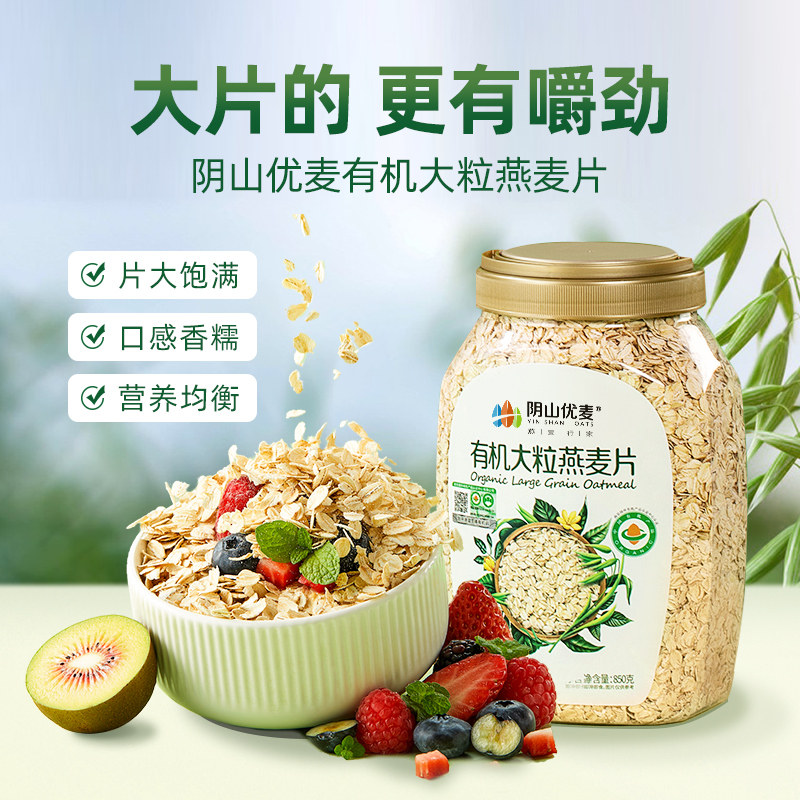 阴山优麦有机大粒燕麦片850g桶装原味麦片饱腹代餐营养燕麦