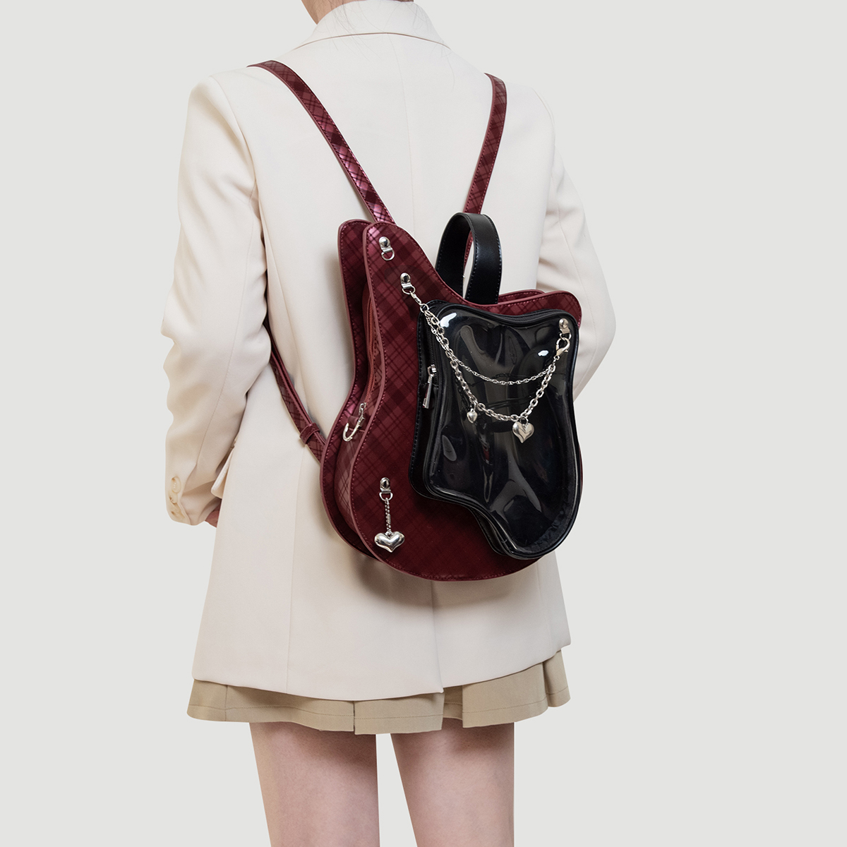 HIATUS原创吉他痛包创意撞色甜酷Y2K链条双肩斜挎背包甜美爱心包