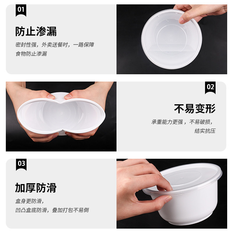 一次性碗带盖冰粉酸辣粉商用外卖盒子可微波炉加热打包盒圆形餐盒