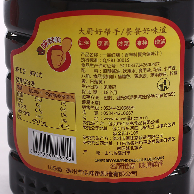 佰味一品红烧酱油饭店用原香头道