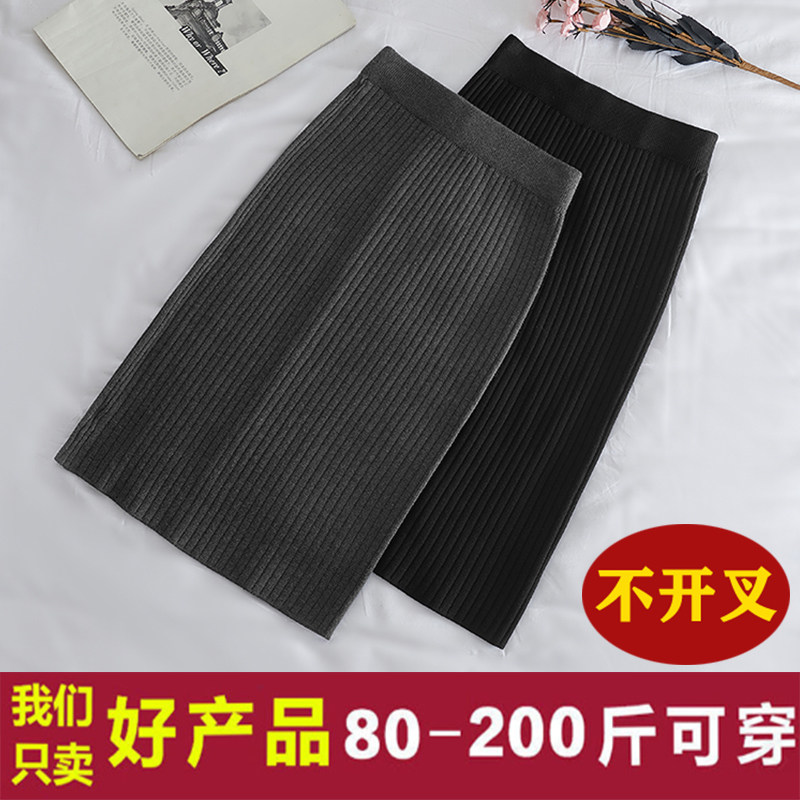 春秋大码胖mm开叉针织高腰中长款半身裙一步裙短裙毛线裙女200斤