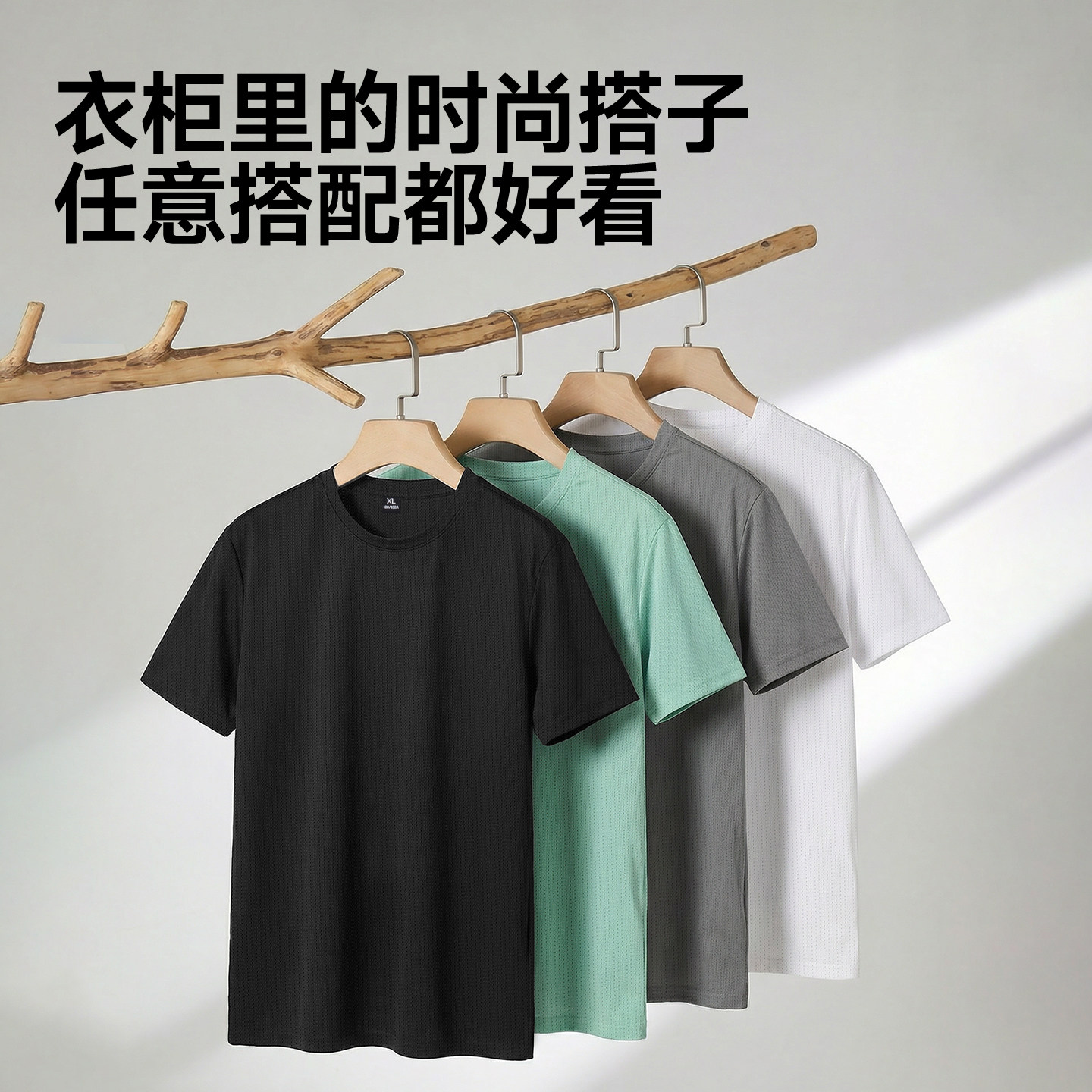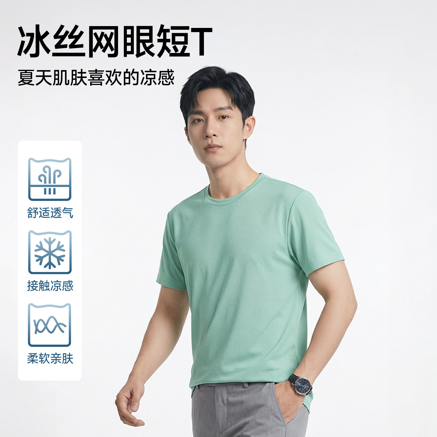 猫人凉感短袖T恤男冰丝高弹运动体恤2026夏季圆领半袖健身上衣男Y