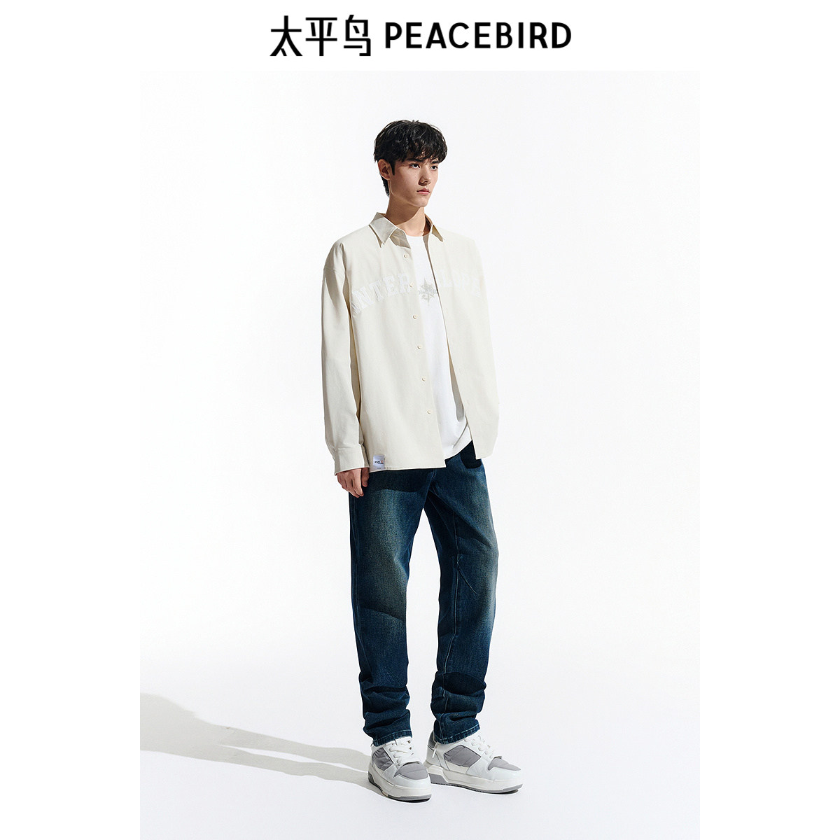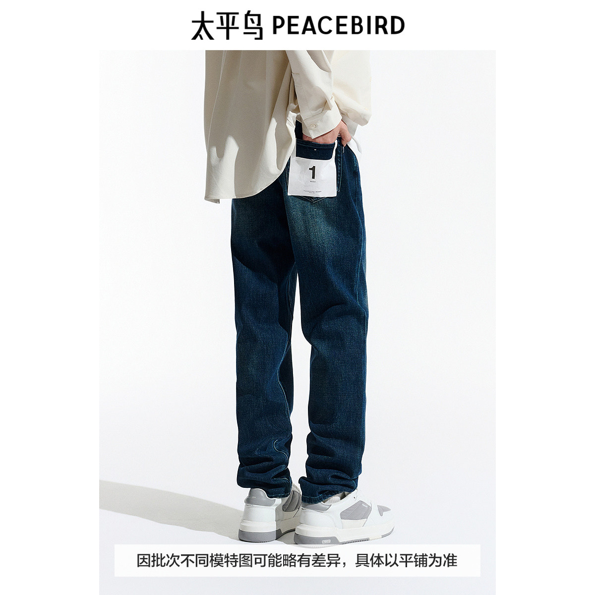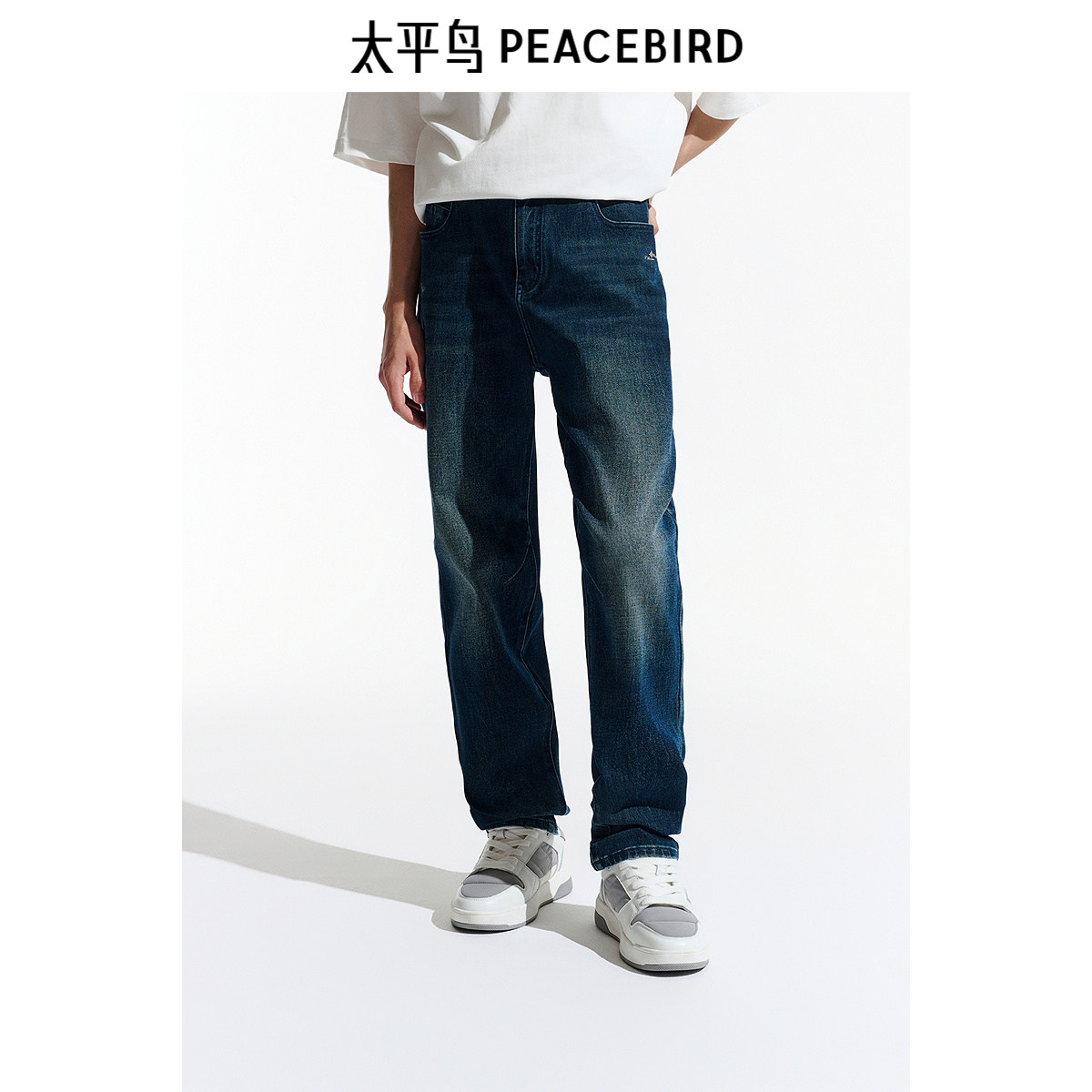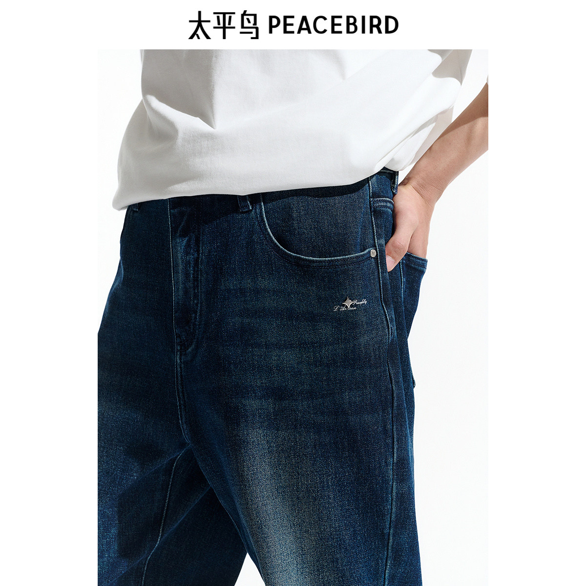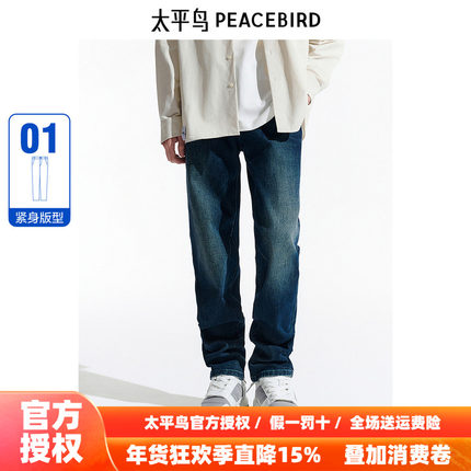 【商场同款】太平鸟男装 休闲牛仔裤撞色刺绣男士长裤 B1HAE4196