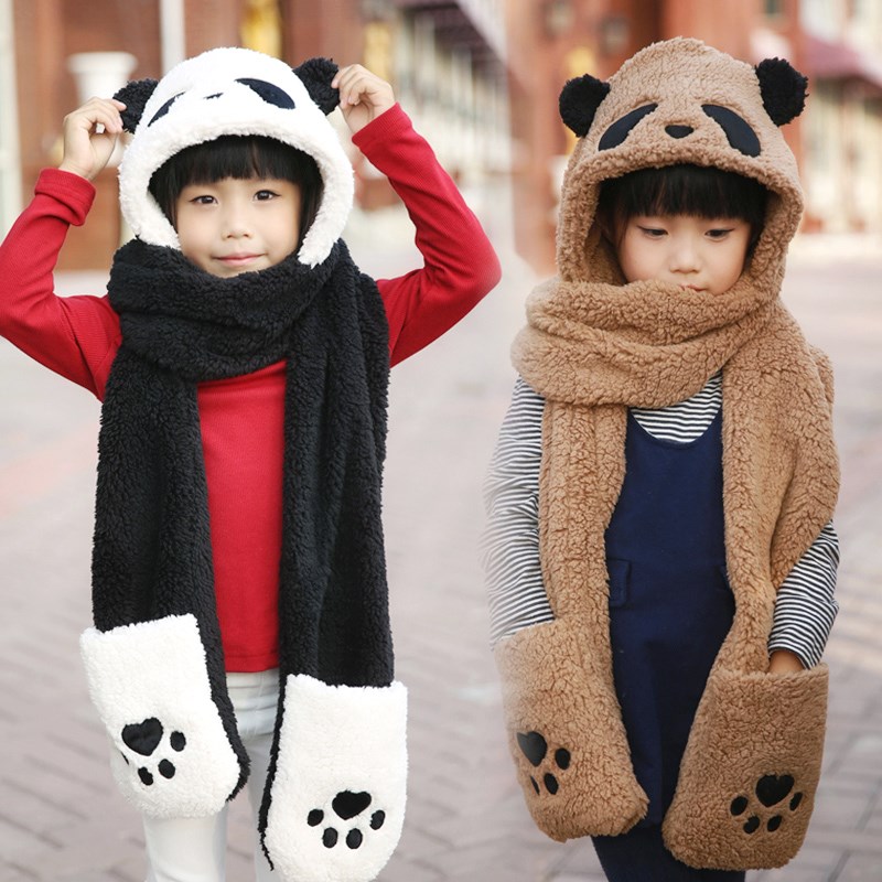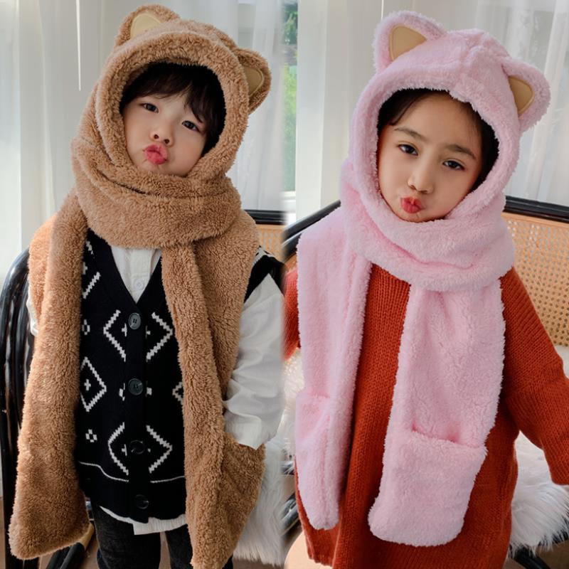 连手套防风帽子儿童围巾女挂脖穿戴卡通中大童甜美男孩防寒帽女生
