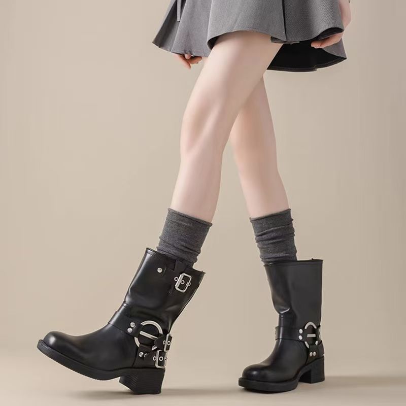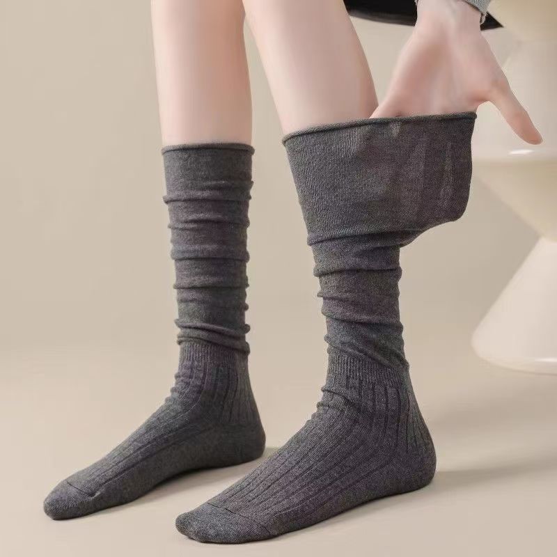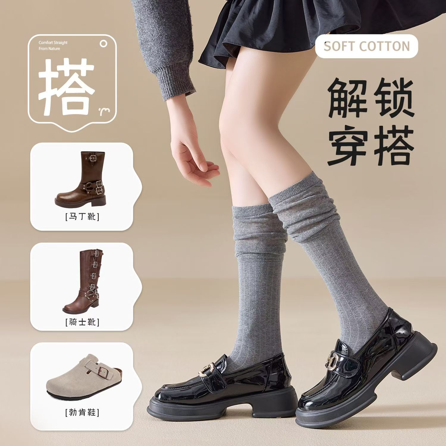 白色袜子女中筒袜春秋美拉德风配短靴子的灰色堆堆袜及膝小腿靴袜