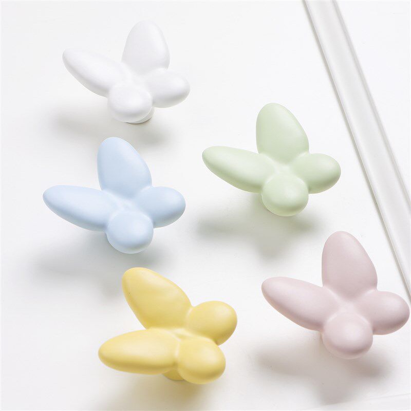星翡可爱蝴蝶拉手柜门抽屉衣柜把手陶瓷彩色卡通儿童房女孩小拉手