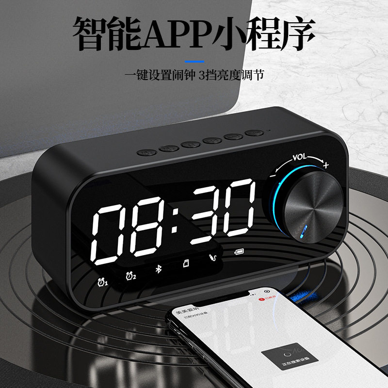 HALFSun/影巨人 032无线蓝牙音箱重低音炮小音响时钟家用闹钟音箱