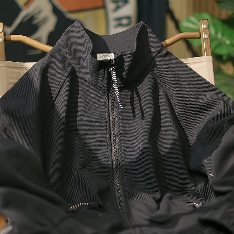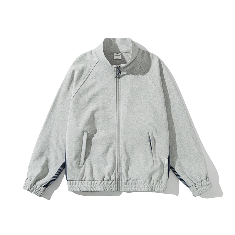 【千千结】春季条纹拼接立领针织外套男休闲百搭宽松运动夹克潮
