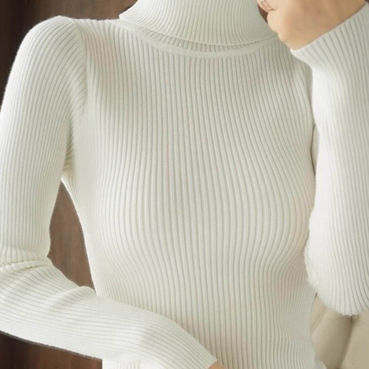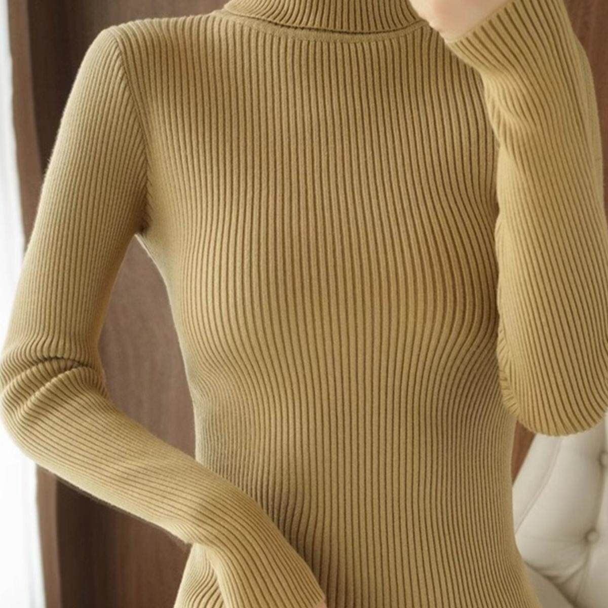 2025新款秋季羊绒衫女高领毛衣女短款加厚抽条修身显瘦针织打底衫