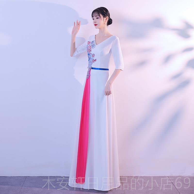 正品大合裙唱演表出服女长红歌比瘦赛显朗诵晚会礼服合唱团爱国演