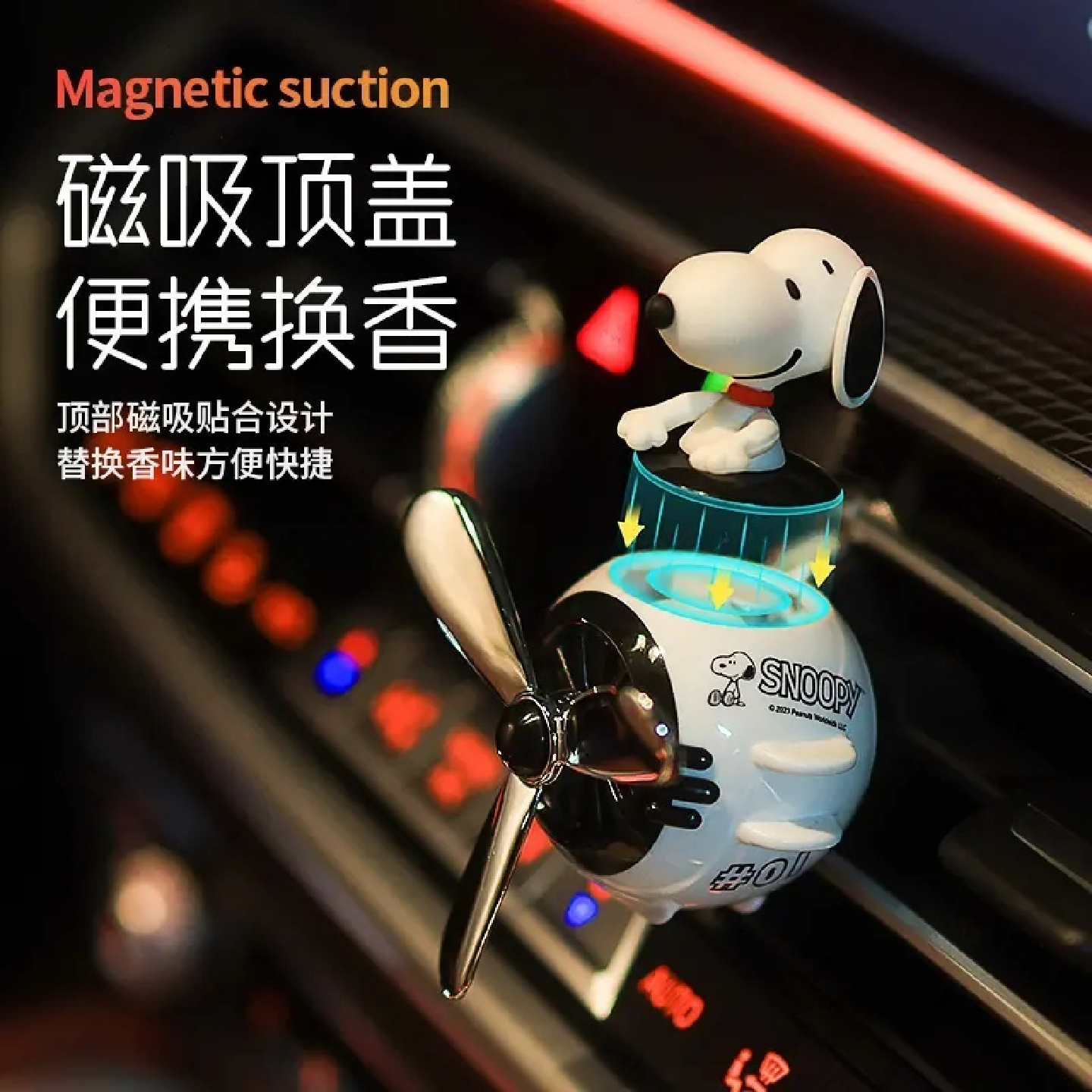 史努比车载香薰膏出风口装饰品摆件挂件香水内饰持久留香高档飞机