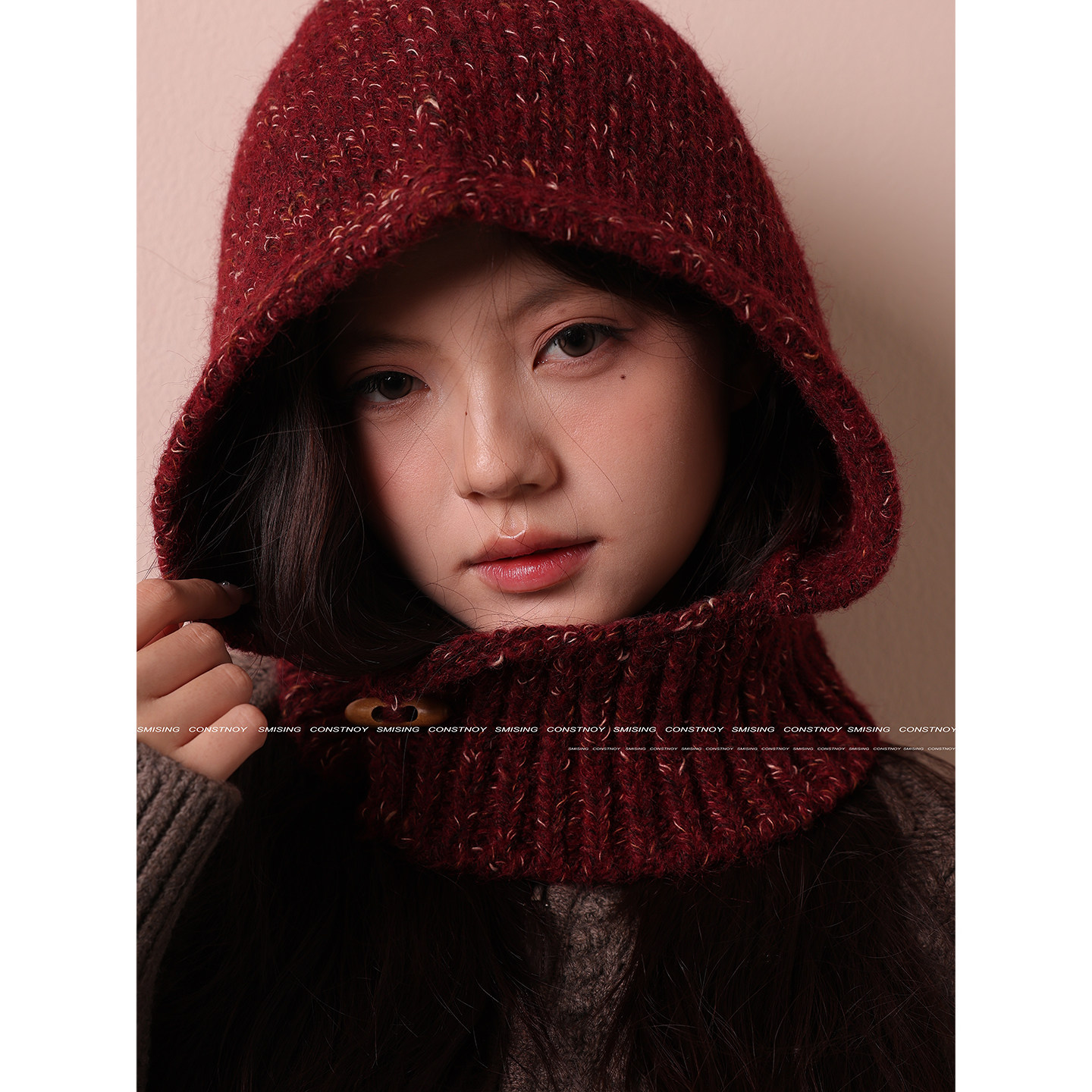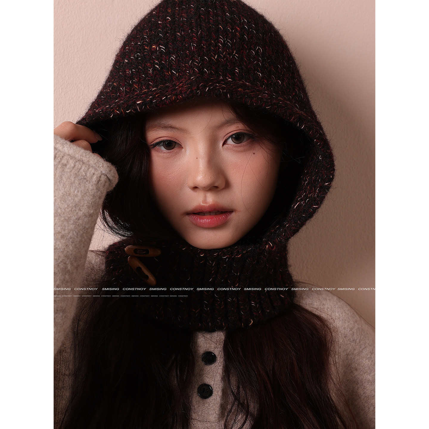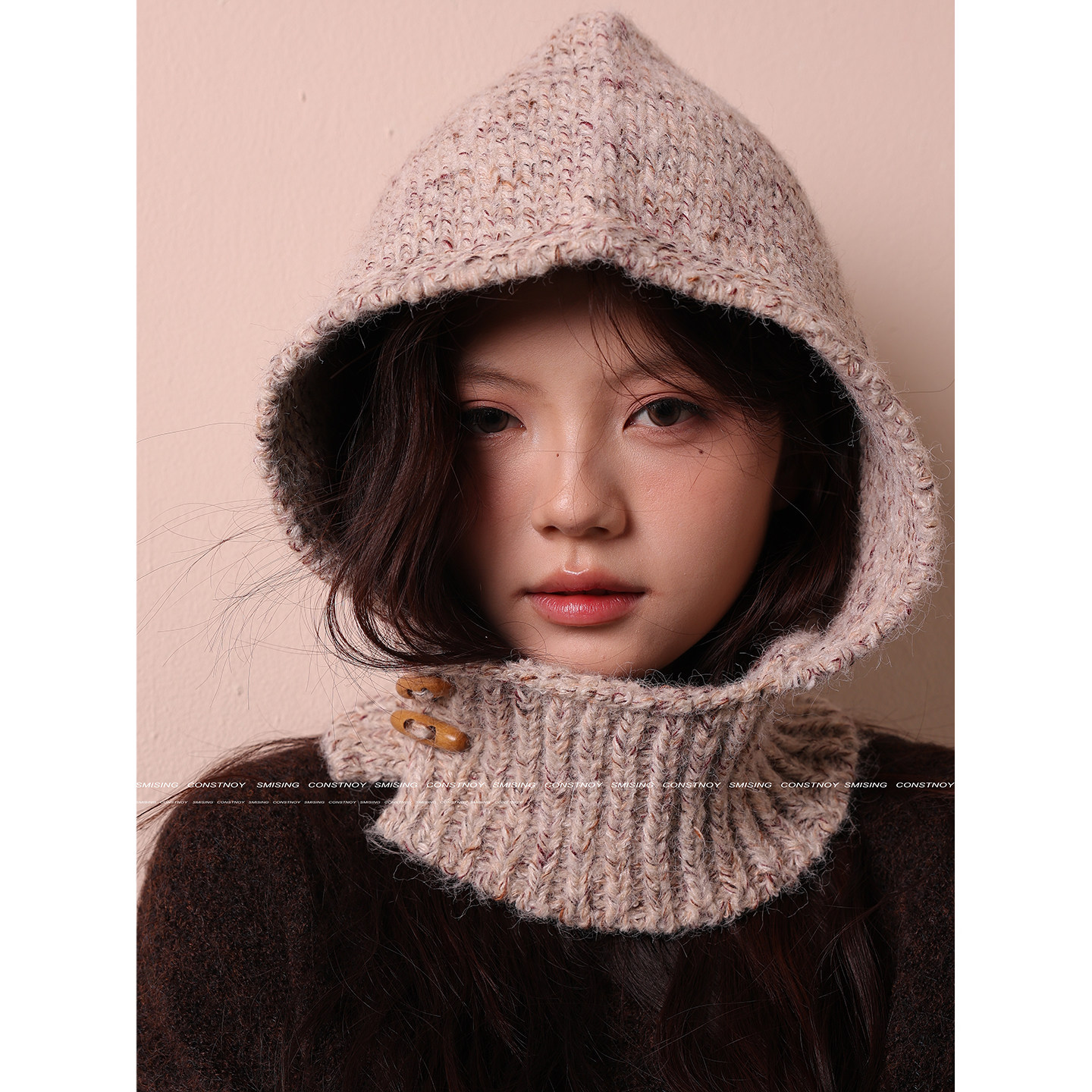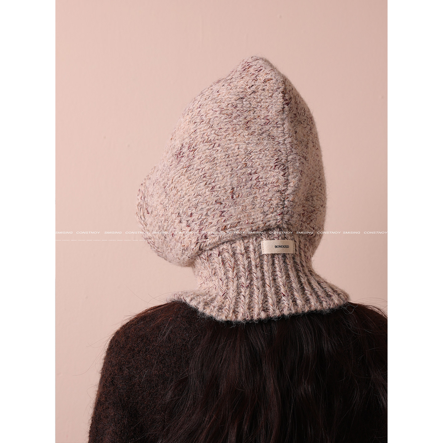 夹花针织高领帽子女秋冬保暖护耳套头围脖一体帽氛围感加厚百搭潮