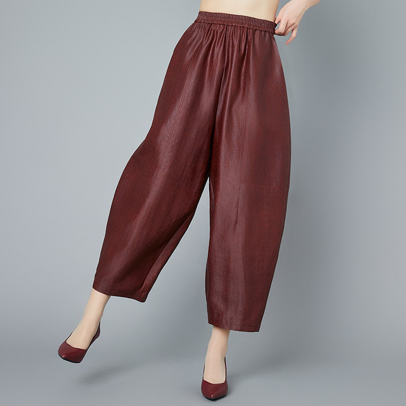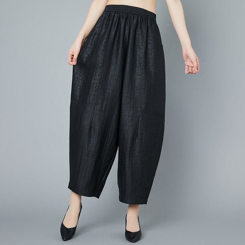 真丝香云纱九分阔腿裤桑蚕丝绸萝卜裤中老年休闲女裤大码妈妈夏装