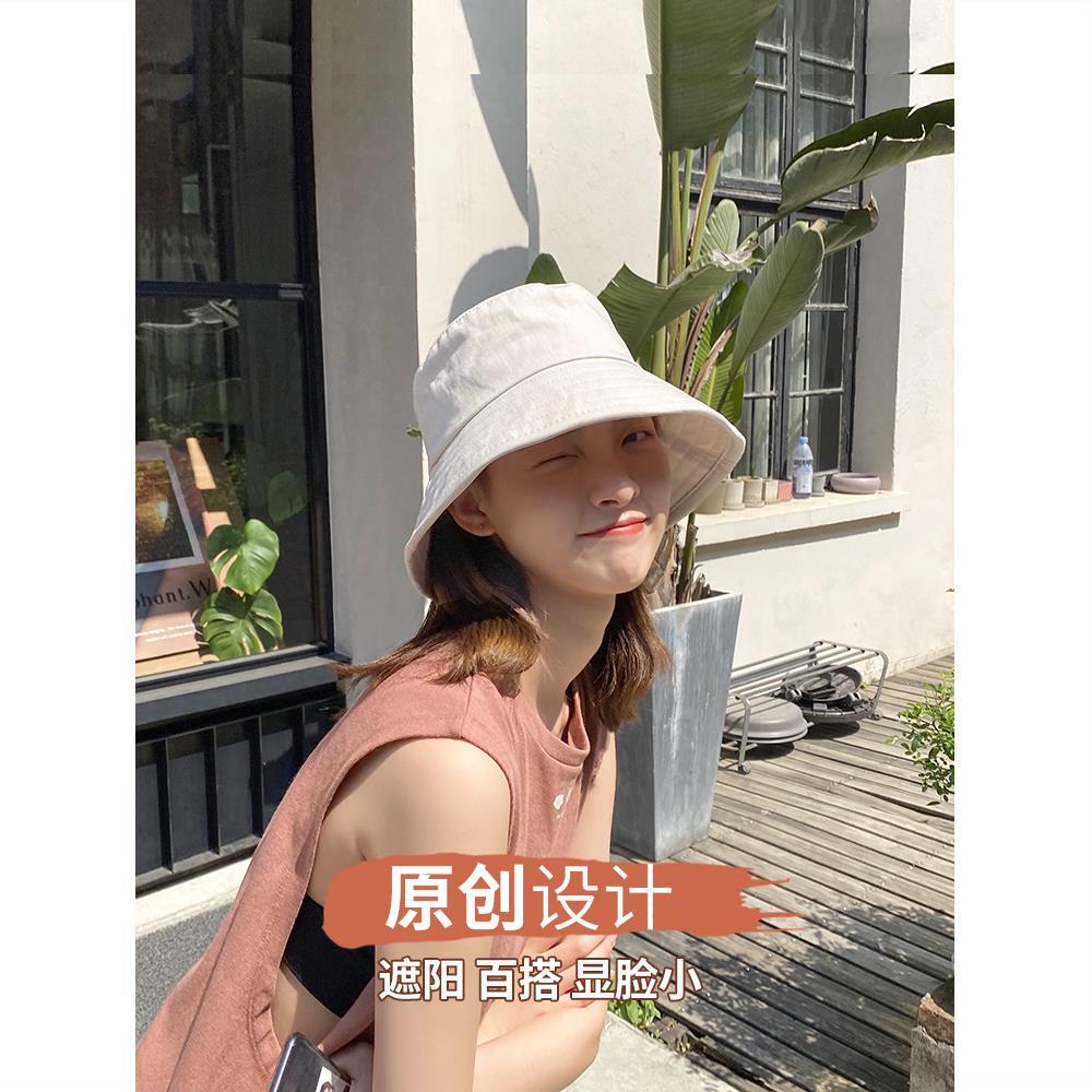 网红爆款渔夫帽女夏季简约百搭防晒遮阳帽遮脸防紫外线太阳帽盆帽