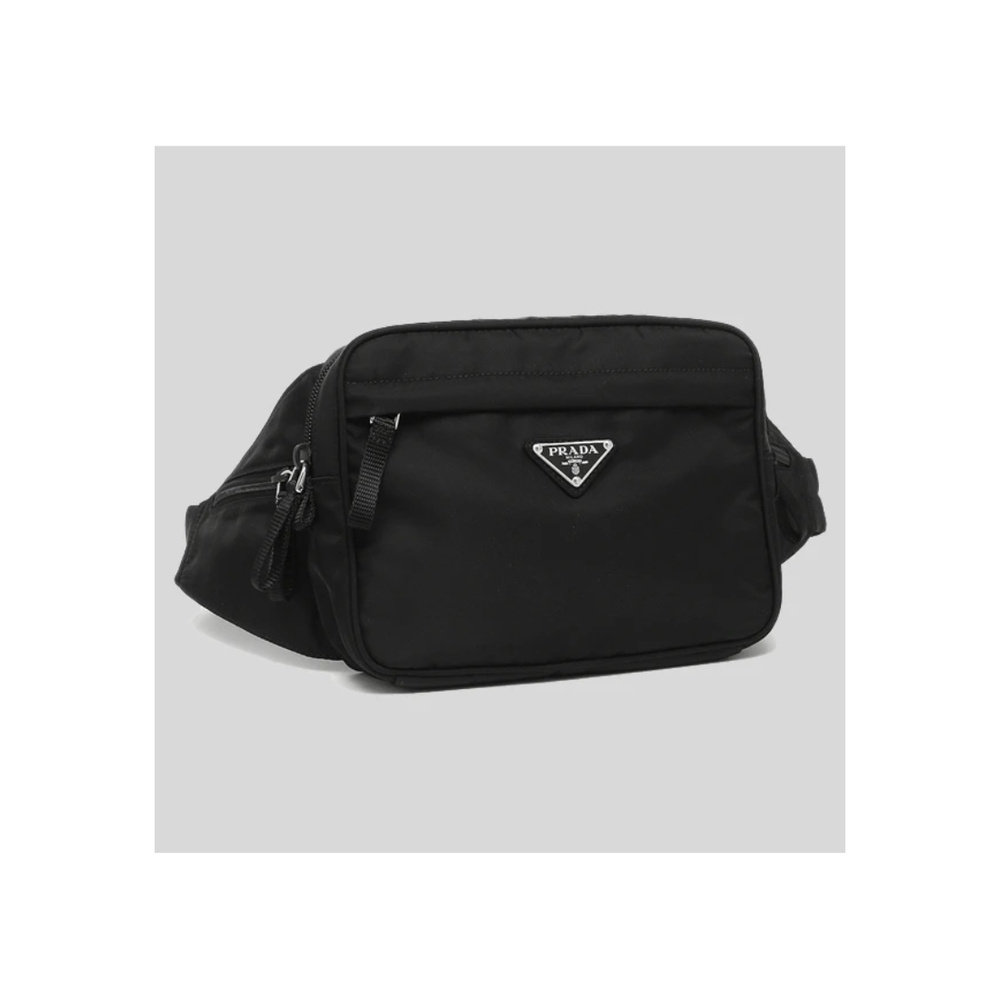 1h可退 香港直邮Prada 黑色徽标贴片腰包 2VL0012A6D