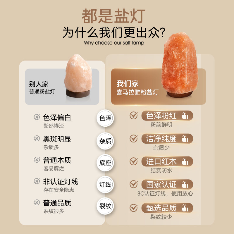 盐灯喜马拉雅天然进口岩盐灯风水摆件卧室睡眠小夜灯招财充电插电