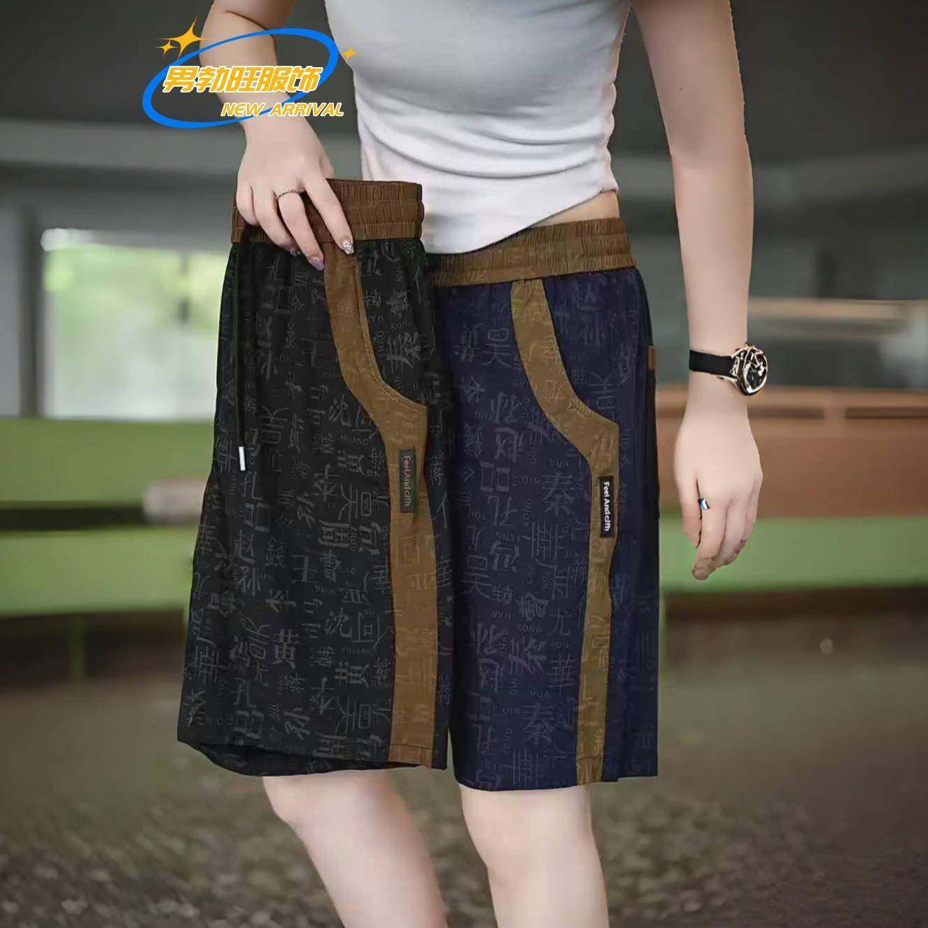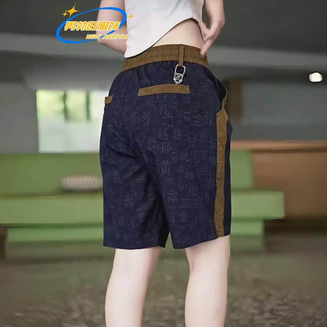 百家姓男士5分短裤夏季薄款潮流宽松冰丝印花五分裤子男2025新款