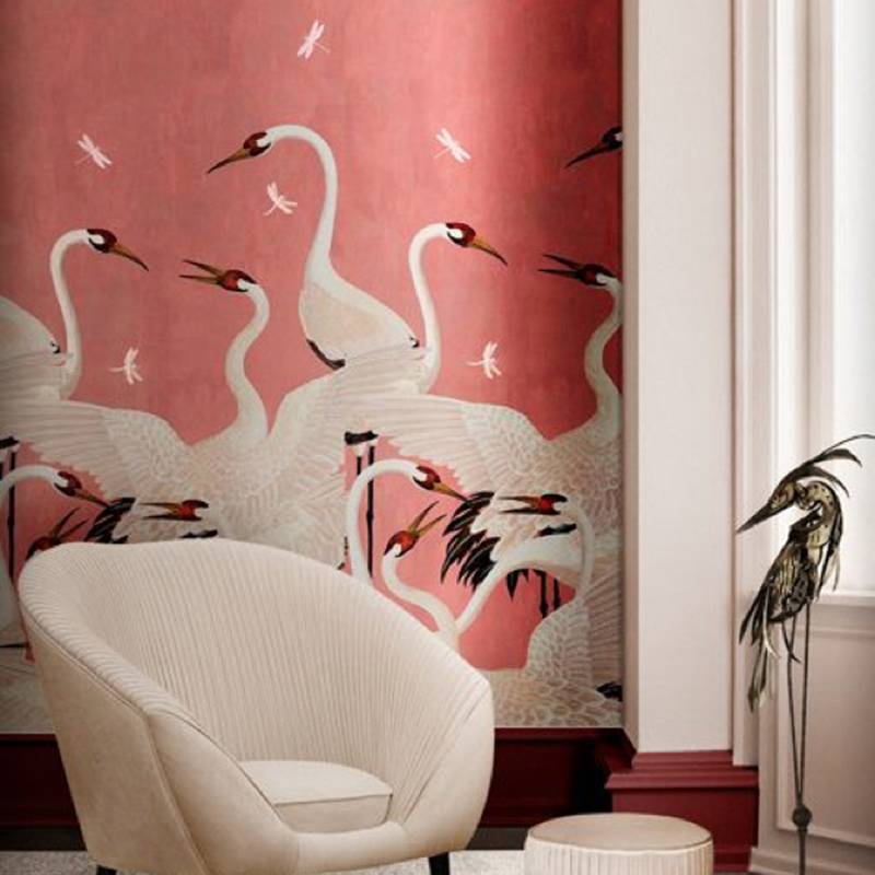 GUCCI 苍鹭 意大利进口壁画 仙鹤蜻蜓墙纸卧室书房客厅古典壁纸