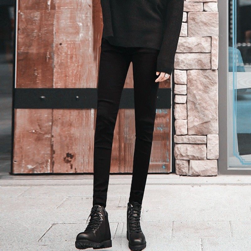 加绒裤黑色小脚牛仔男小腿修身铅笔裤韩版小裤脚弹力紧身长裤冬季
