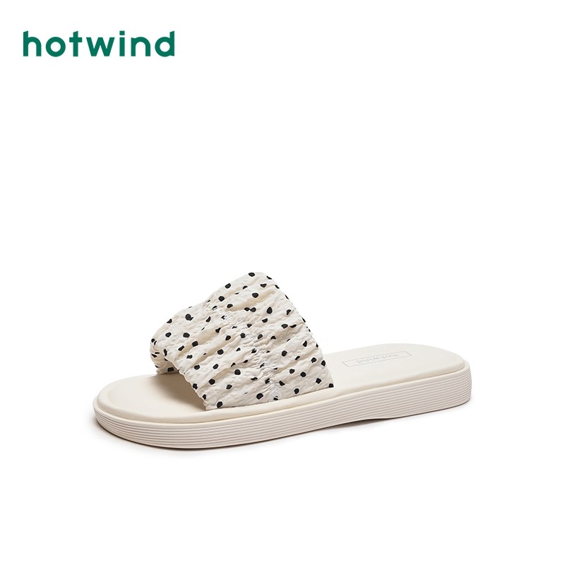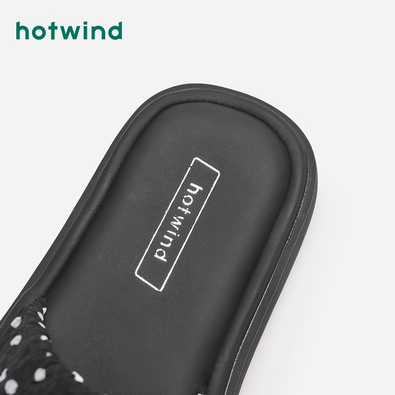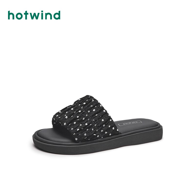 热风夏季新款女士时尚浪漫波点拖鞋外穿配裙子可爱一字拖潮