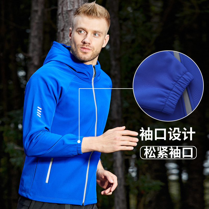 热卖加绒休闲运动外套跑步登山训练服男士连帽拉链夹克加大码
