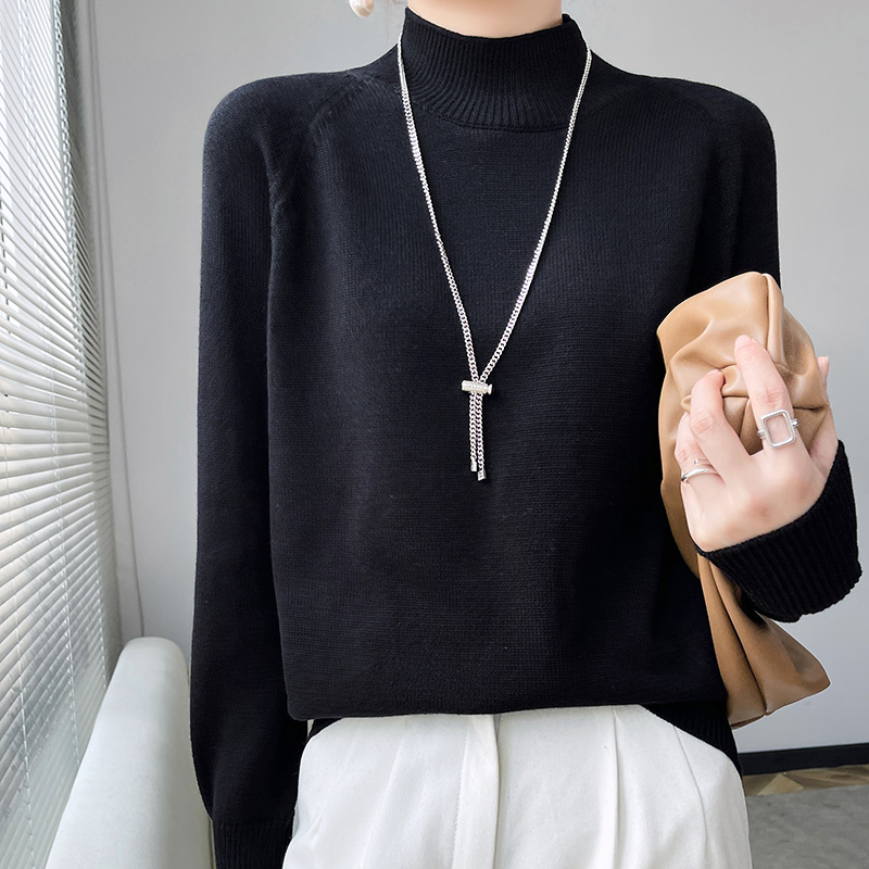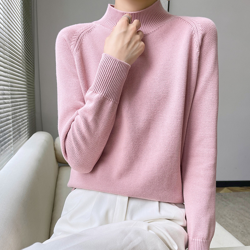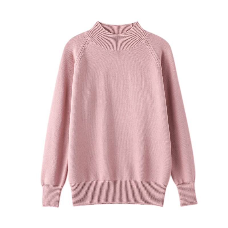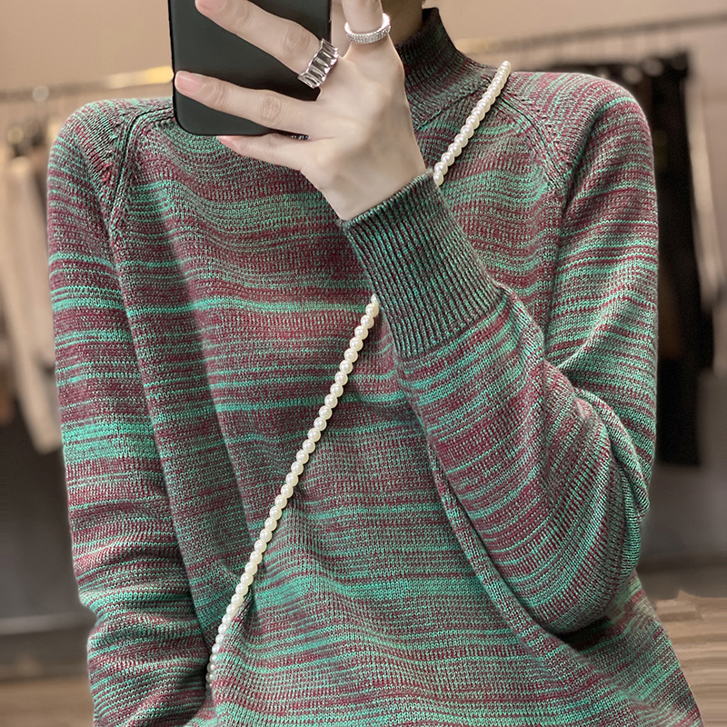 七针加厚半高领毛衣条纹针织衫女秋冬纯棉线宽松套头内搭打底衫