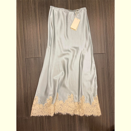 法式蕾丝拼接醋酸高腰鱼尾裙女夏季新款高端精致女神范优雅半身裙