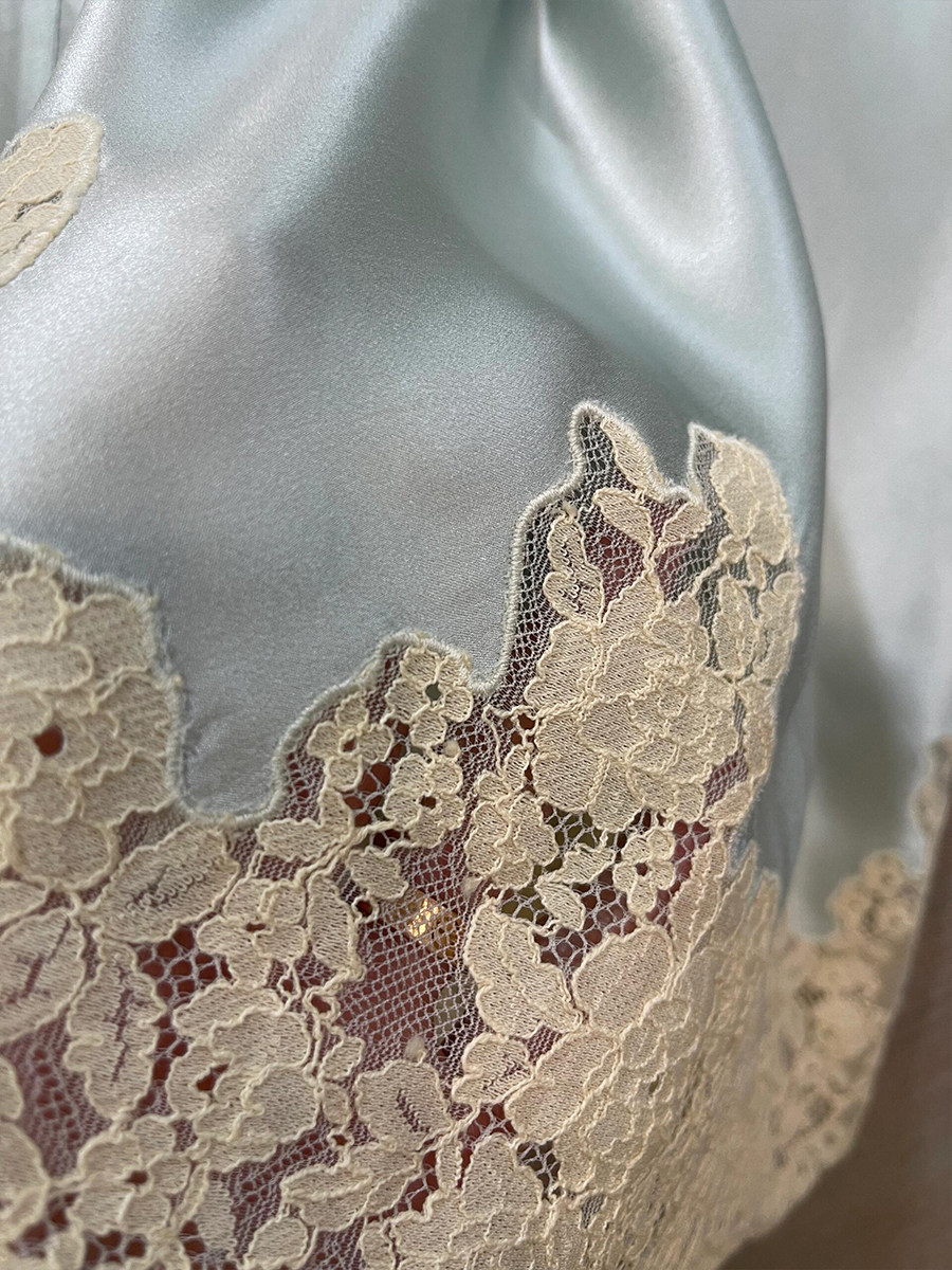 法式蕾丝拼接醋酸高腰鱼尾裙女夏