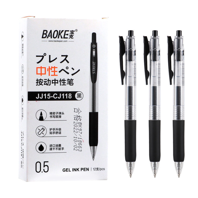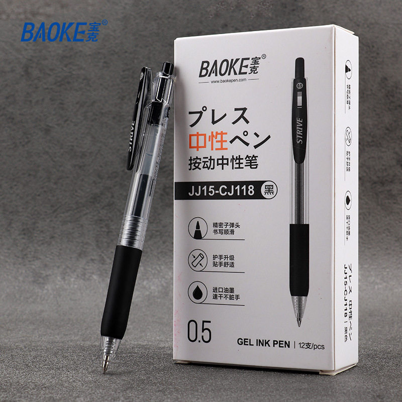 宝克JJ15按动式中性笔商务办公黑色签字笔学习专用刷题笔文具