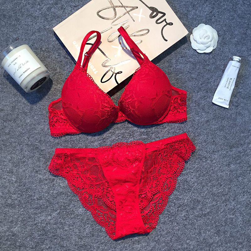 性感蕾丝文胸套装深V不聚拢调整型女士内衣套装薄款小胸少女夏季