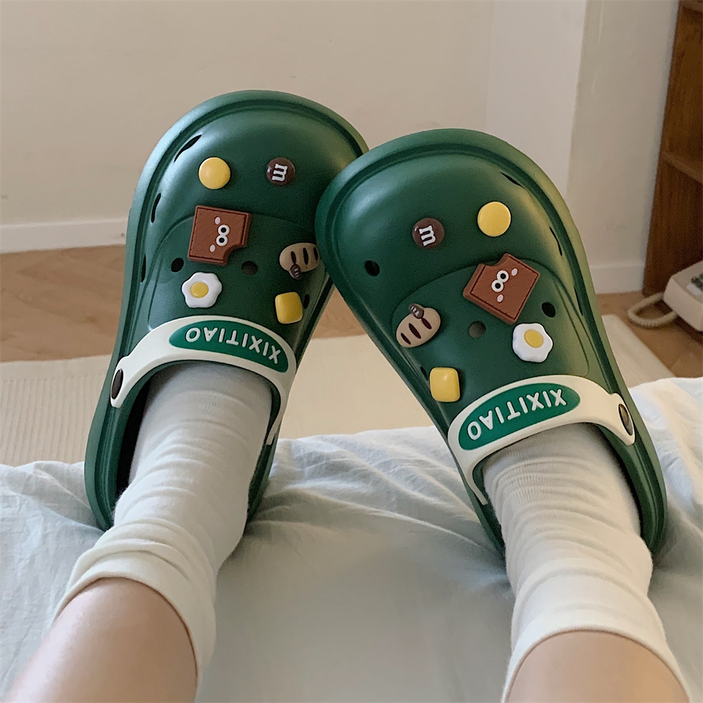 细细条 DIY可爱饼干包头凉拖夏季户外防滑街头风时尚厚底洞洞鞋女