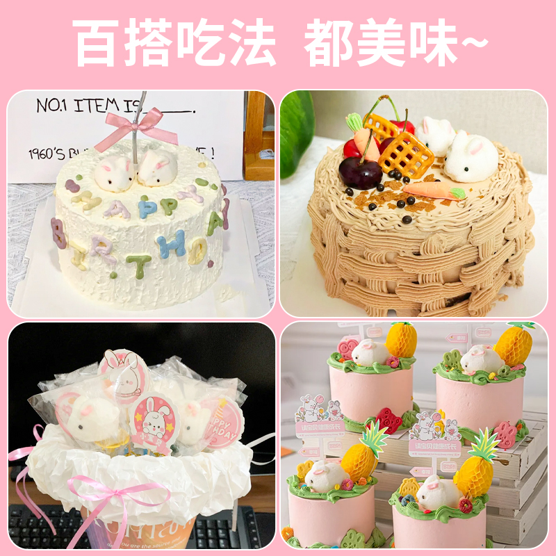 兔子棉花糖蛋糕装饰3D小白兔软糖摆件卡通动物造型糖果甜品台点缀