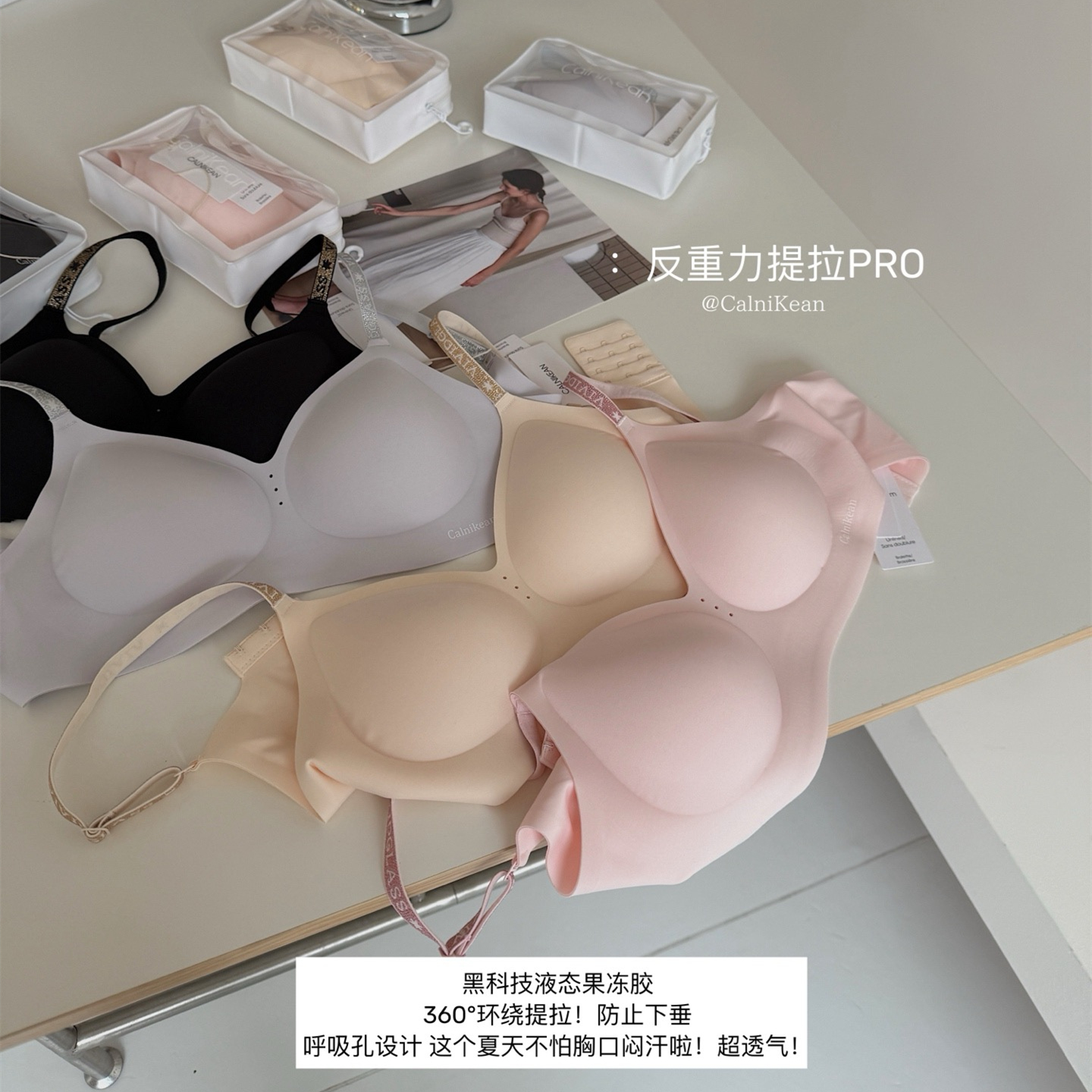 CalniKean反重力呼吸内衣裤女无钢圈聚拢抗菌无痕果冻胶文胸套装