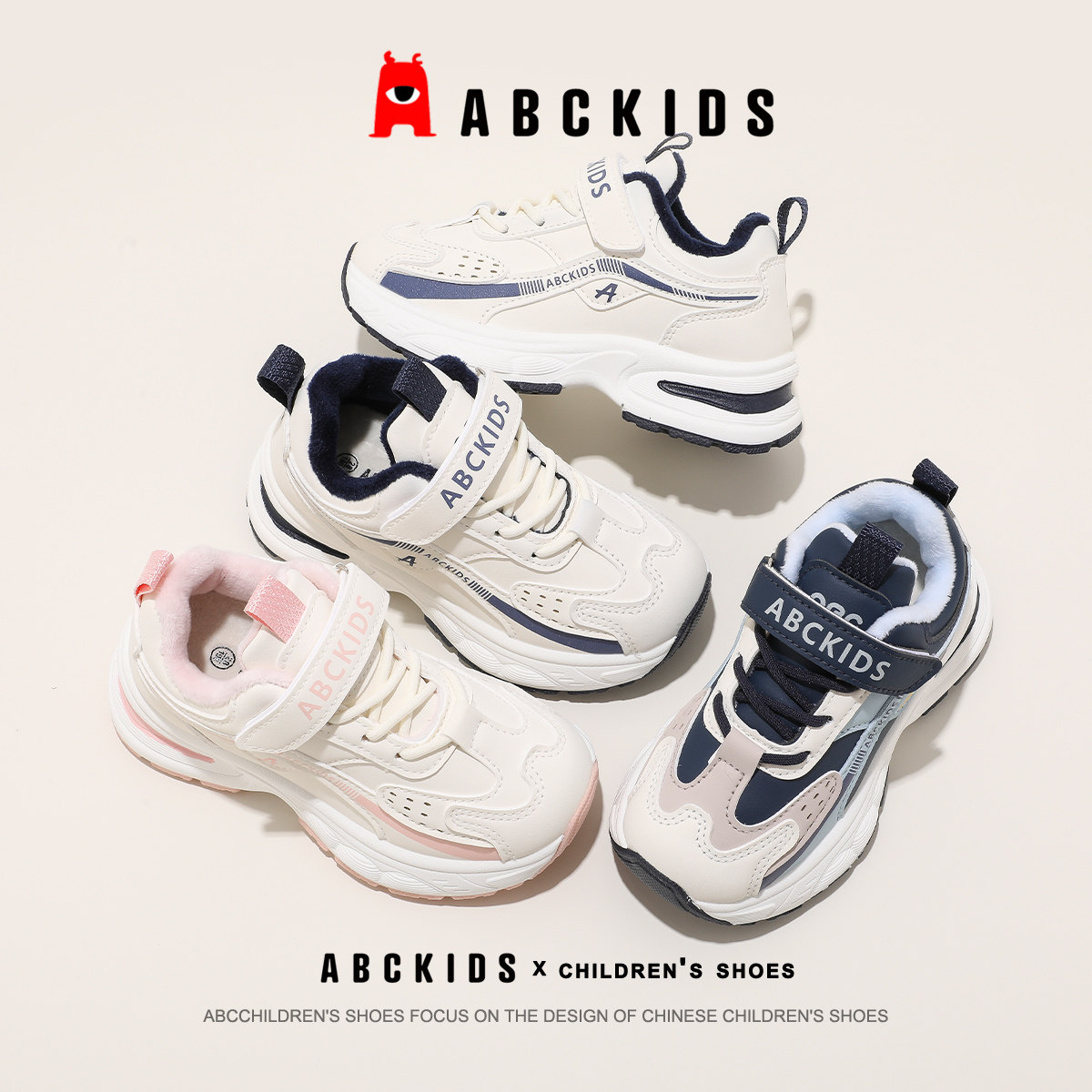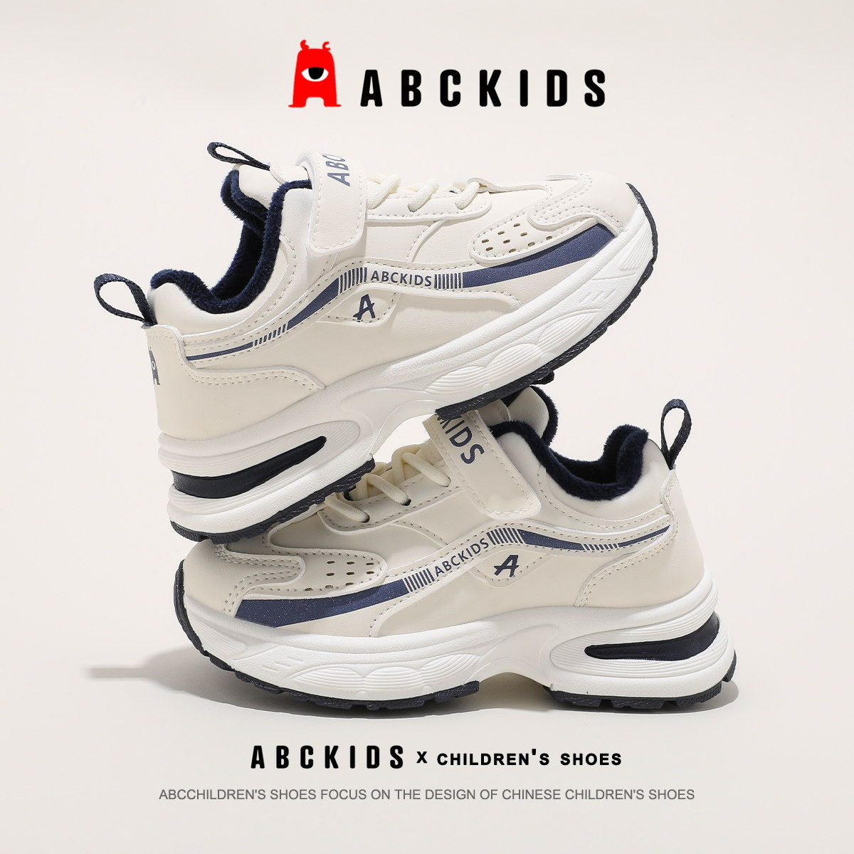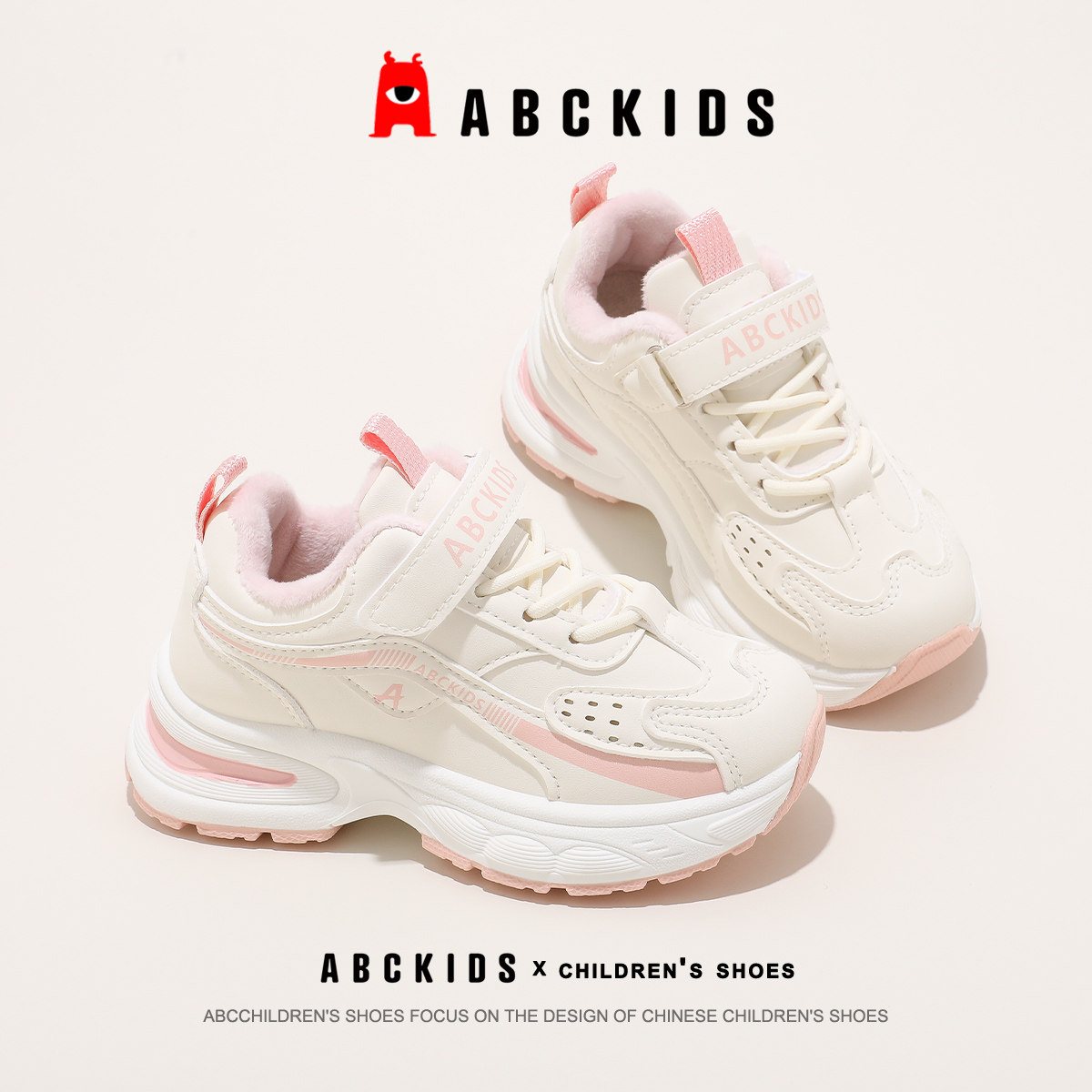 abckids童鞋儿童运动鞋2025冬季鞋子老爹鞋男童加绒保暖女童棉鞋