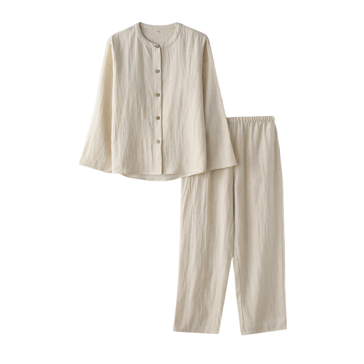 简约睡衣男女春夏季棉亚麻莱赛尔天丝薄款吸汗长袖情侣家居服套装