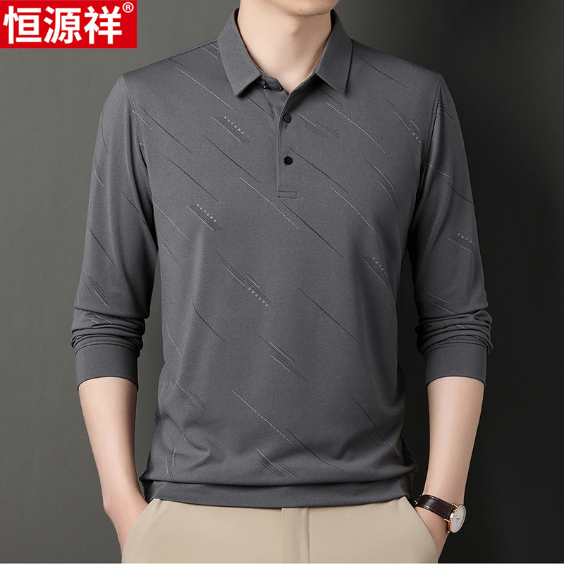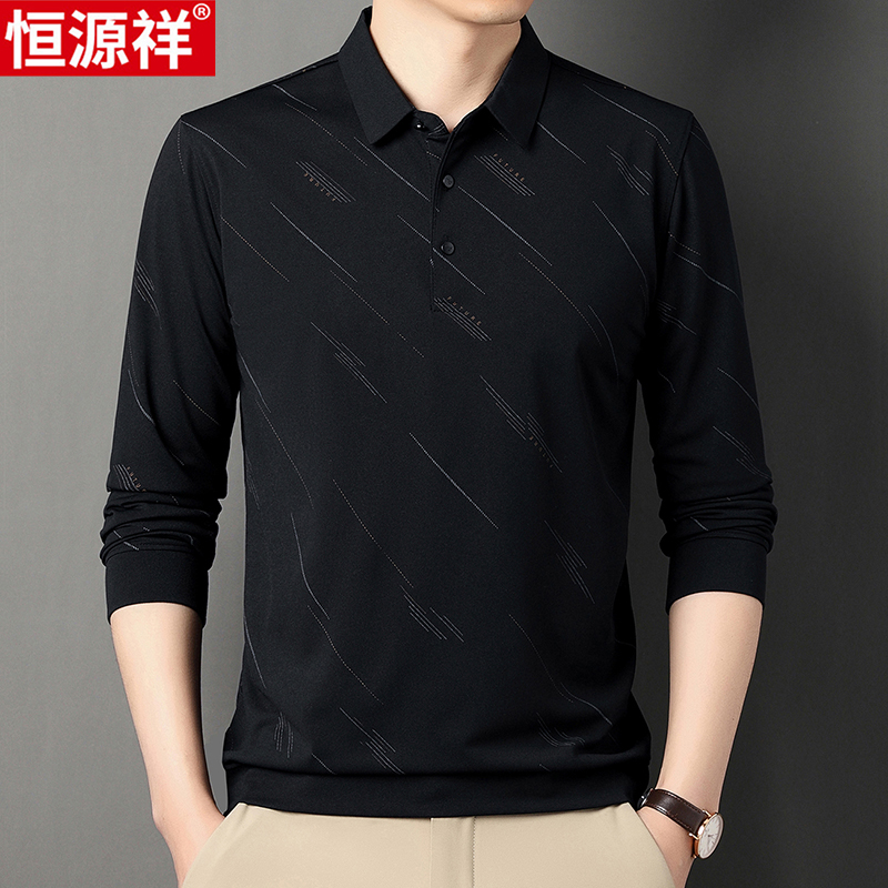 恒远翔大芬牌秋冬男士桑蚕丝长袖t恤中老年爸爸t恤翻领上衣