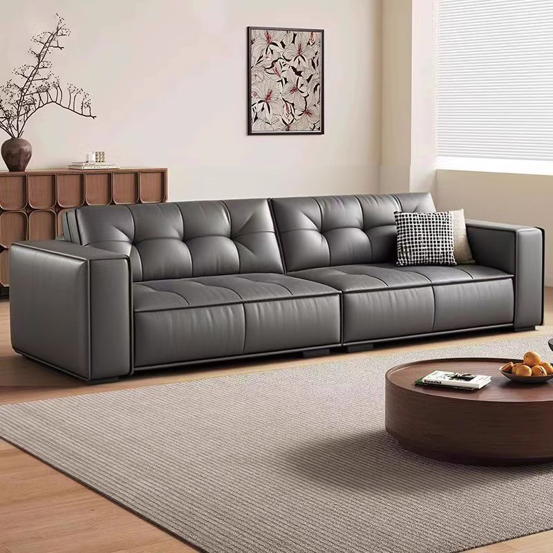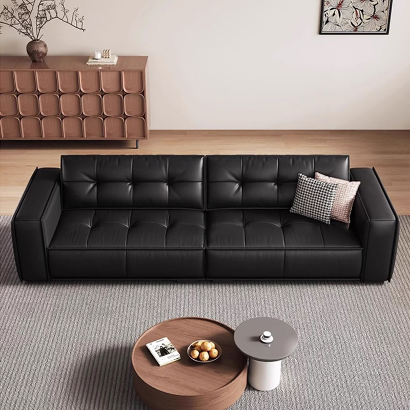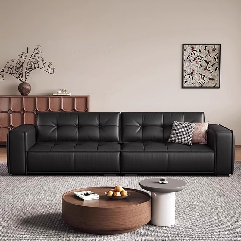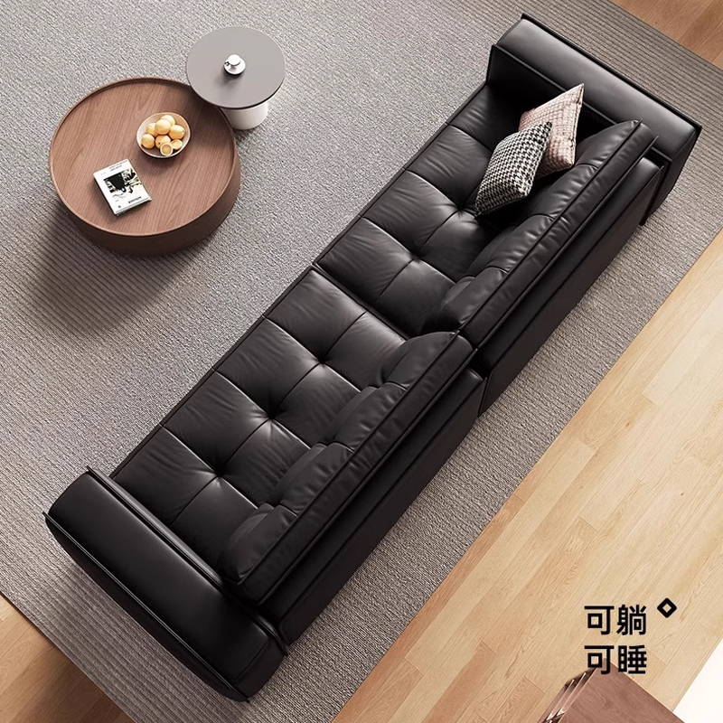 意式极简约现代客厅小户型轻奢直排黑色复古风高档豆腐块真皮沙发